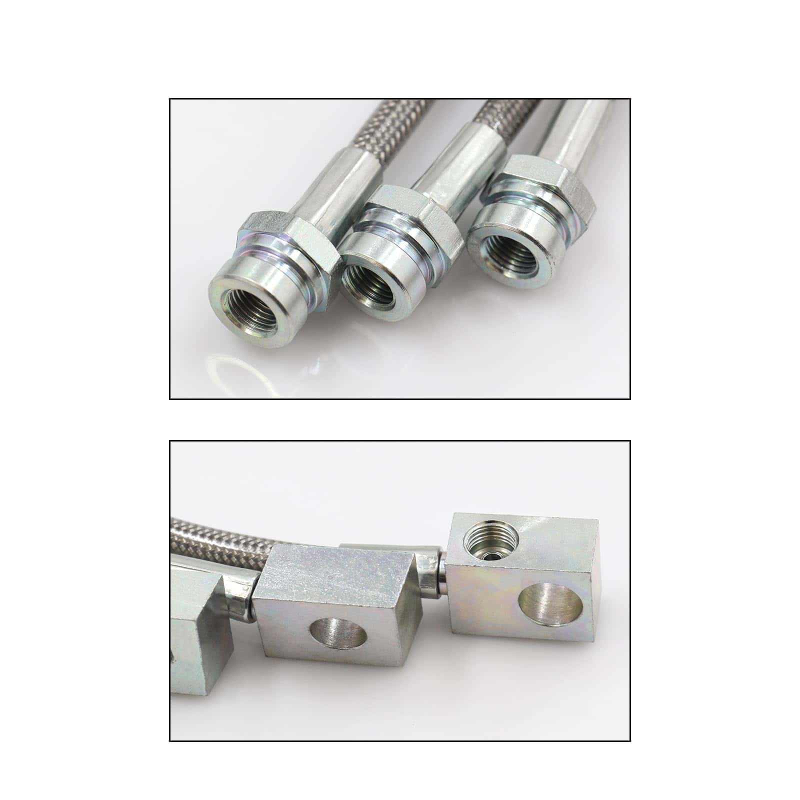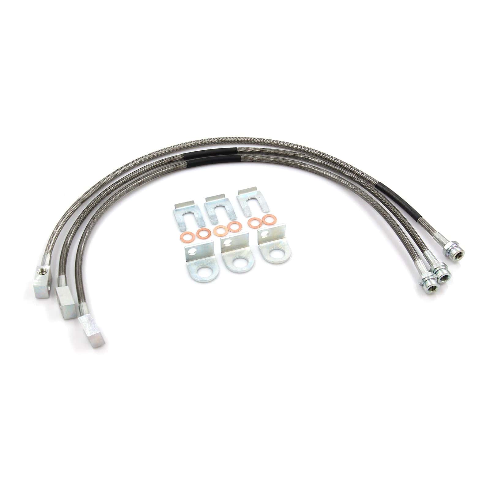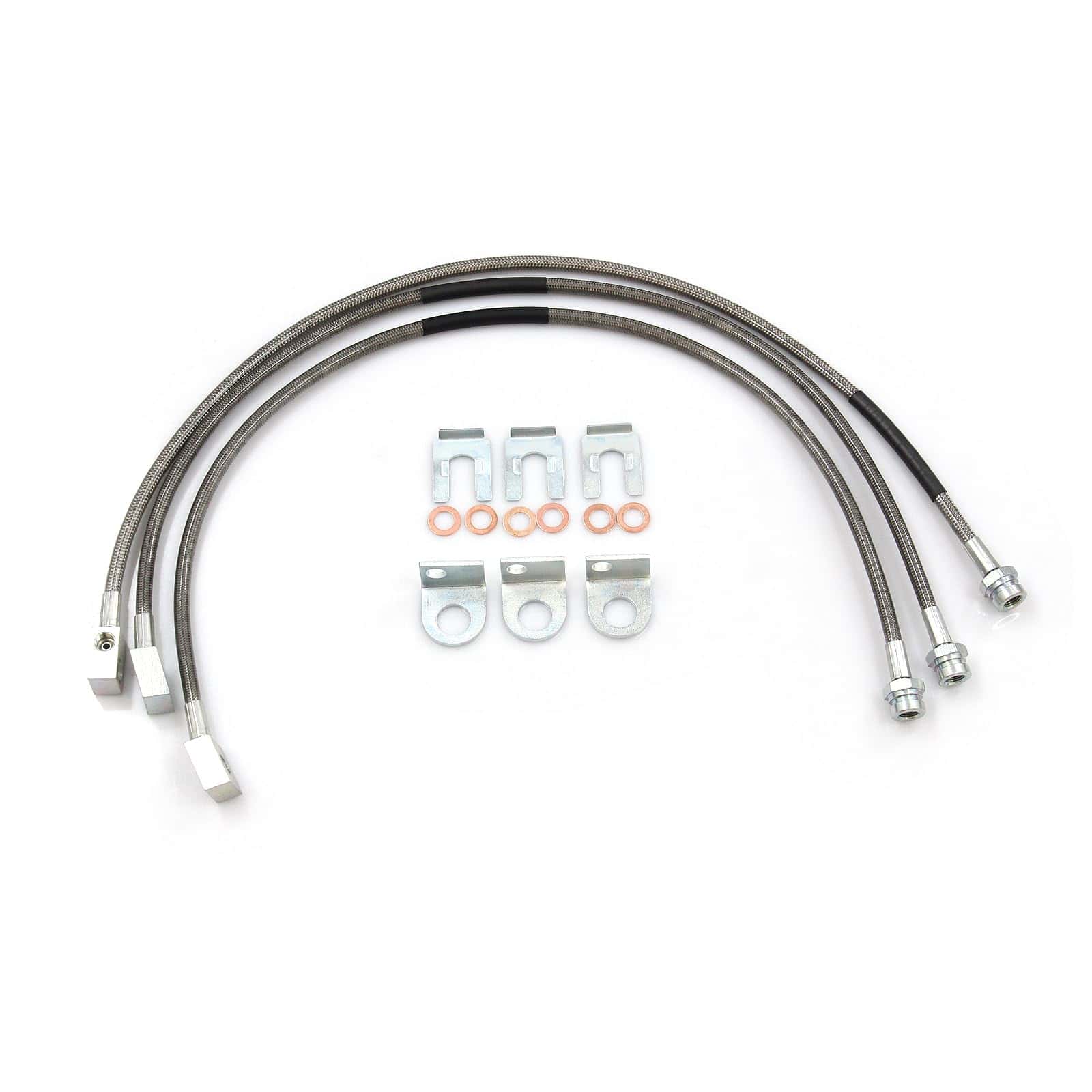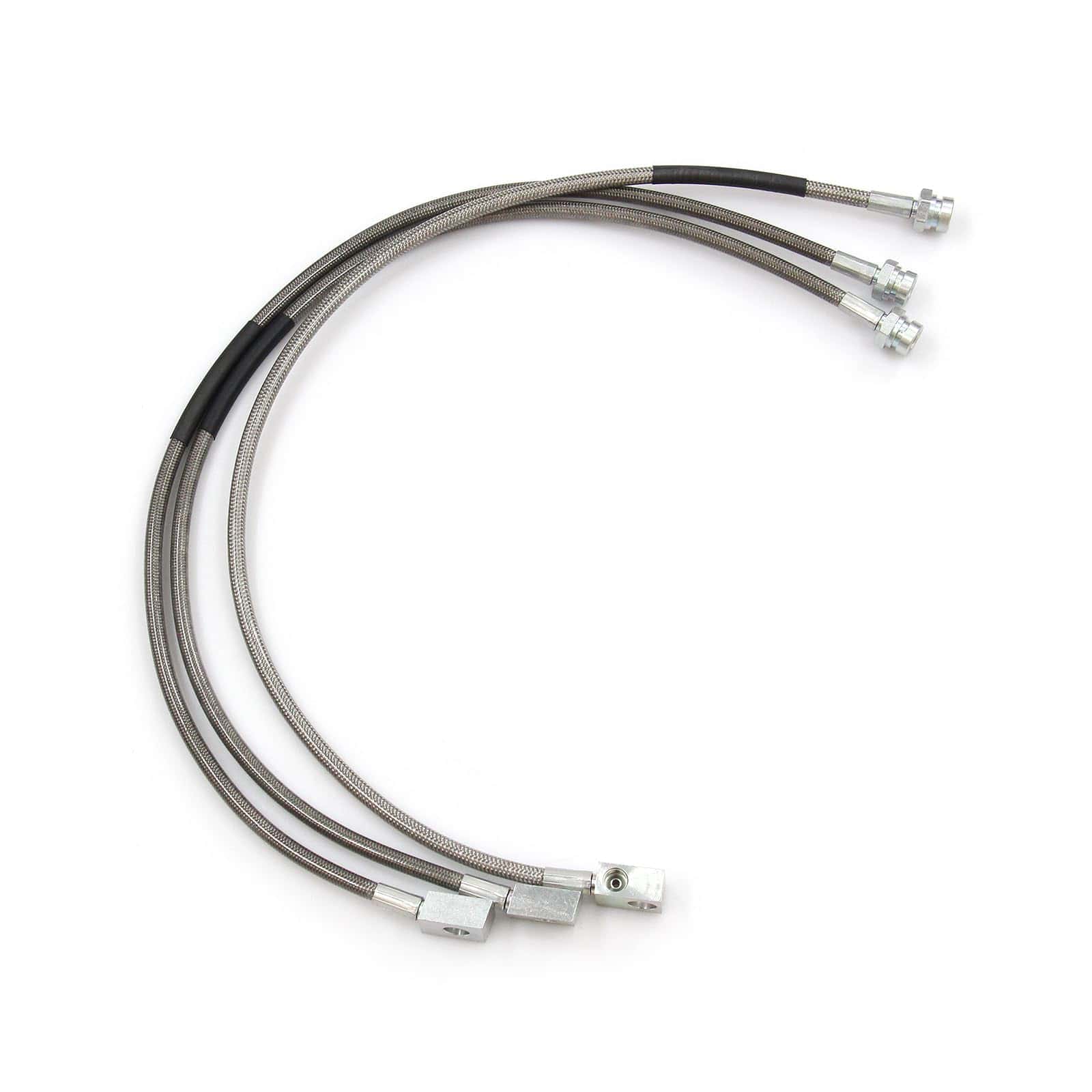 Línea de freno delantero extendido de acero inoxidable Goldzhi para Jeep Wrangler TJ / YJ / XJ 1987-2006 89715. Este producto es adecuado para varios modelos de Jeep Wrangler, proporcionando durabilidad y resistencia. Fabricado con acero inoxidable trenzado, garantiza una larga vida útil y un rendimiento confiable. Recomendamos la instalación por personal especializado para evitar cualquier daño potencial. Asegúrate de que esta línea de freno sea compatible con tu vehículo antes de realizar la compra. Garantía de 1 año para una mayor tranquilidad.