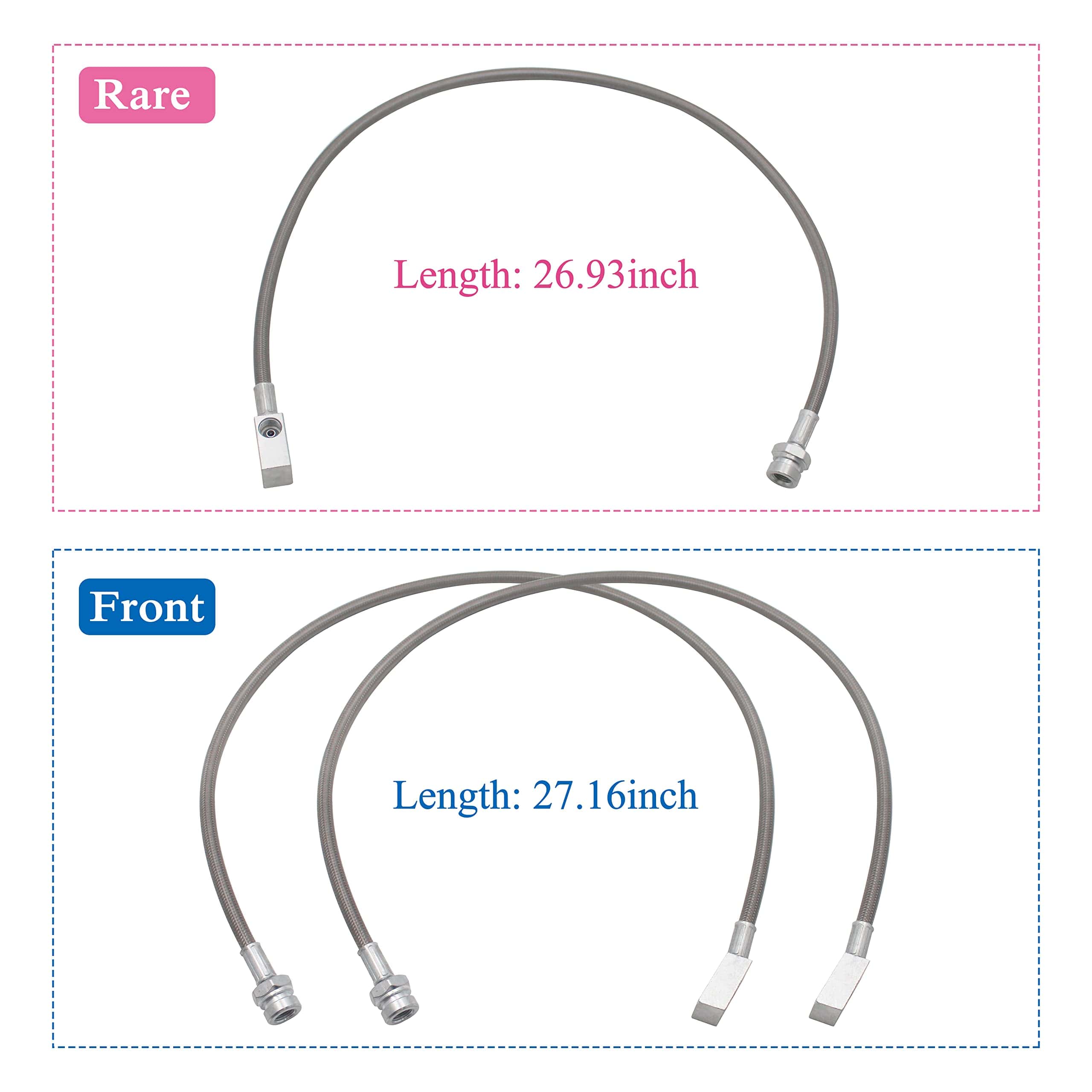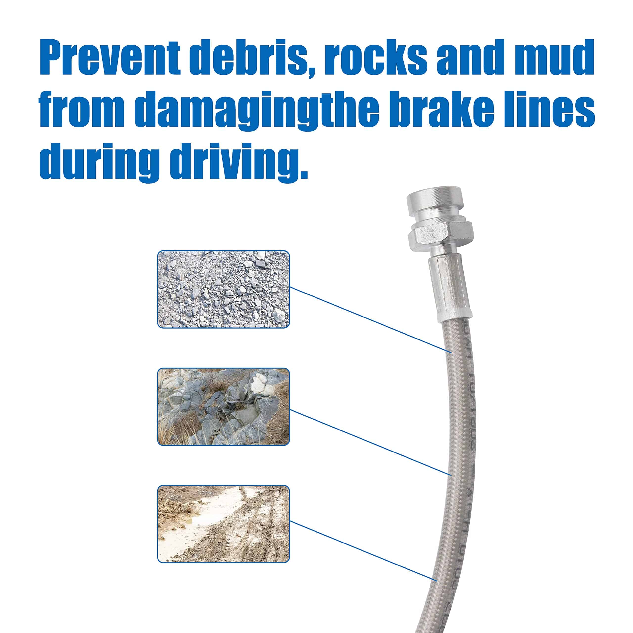 La línea de freno de acero inoxidable alargada 89715 se adapta hacia adelante y hacia atrás. El material de acero inoxidable extiende la vida útil. Es ideal para personas que desean reemplazar la línea de freno con mal rendimiento o envejecida.