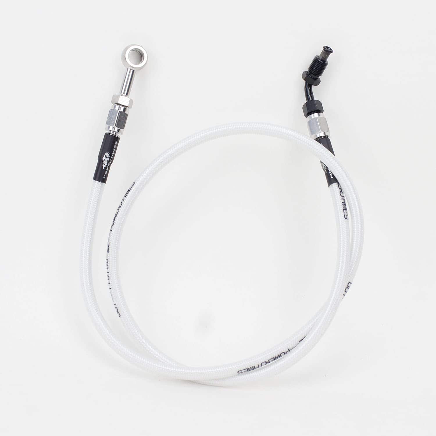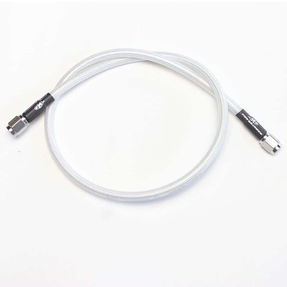 Materiales: Interior trenzado de acero inoxidable y exterior de piel transparente de plástico PC blanco perla; Se vende por unidad, solo la línea de freno. (Si necesita 90 grados, 180 banjo con 10mm o 12mm, los puede comprar en otro enlace en nuestra tienda.) Se adapta para un solo rotor de freno de Harley Davidson.