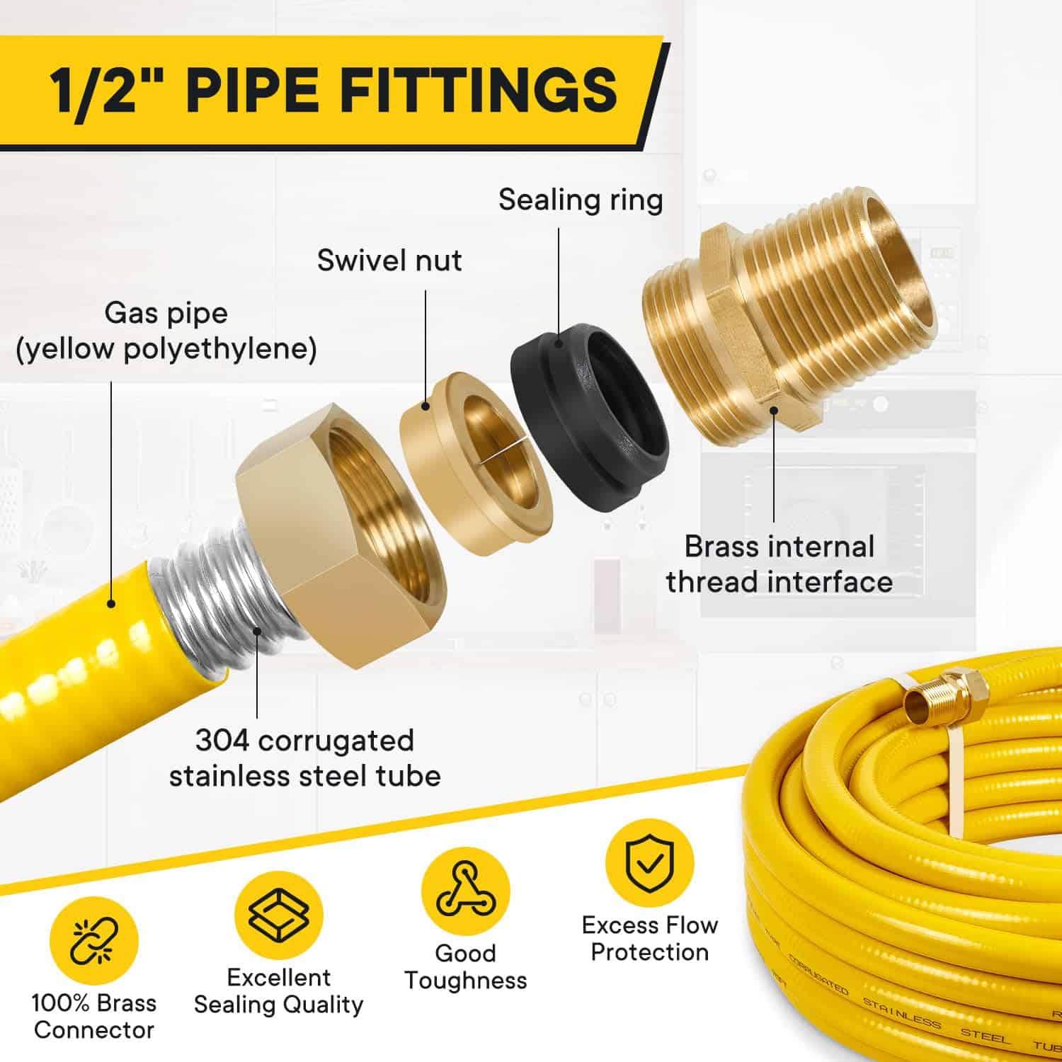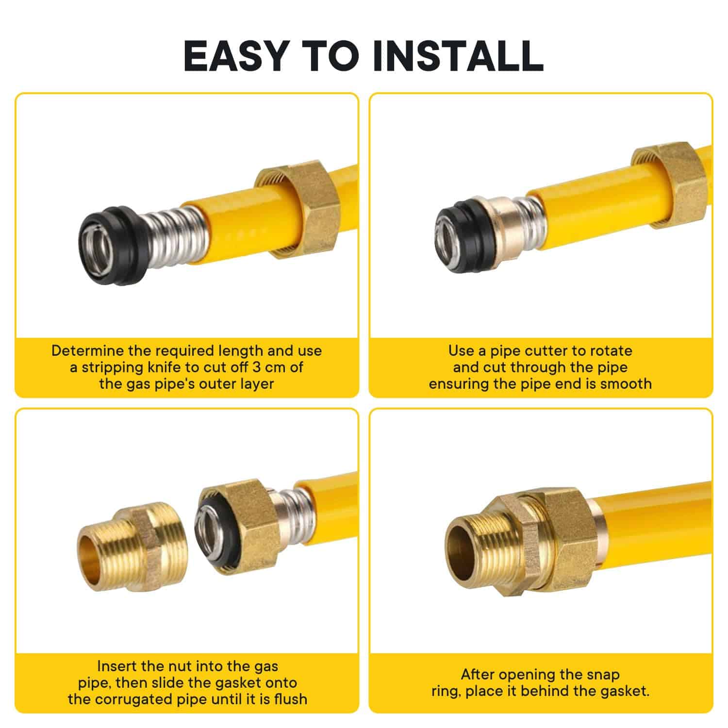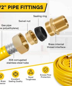 2. Instalación fácil – El tubo de acero inoxidable corrugado es flexible y se puede cortar a la longitud deseada, lo que facilita su navegación a través de áticos, sótanos, esquinas y curvas. Su construcción sin costuras reduce los puntos de conexión y evita las fugas de gas, garantizando comodidad y 100% seguridad. Disfrute de la comodidad de una instalación sencilla con nuestra línea de gas flexible. El acero inoxidable resistente a la corrosión y la funda resistente a los rayos UV lo hacen duradero, mientras que el diseño flexible permite un enrutamiento sin esfuerzo a través de cualquier espacio.