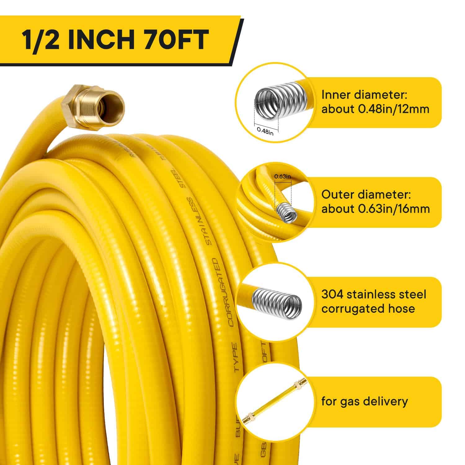 Línea de gas CSST, 70 pies 1/2″ Línea de gas natural