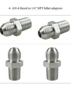 Kit de Manguera de Enfriador de Transmisión de Acero Inoxidable Trenzado Flexible y Adaptadores de Aluminio Compatible con GM Ford Chevy 4L80E 1996 y Nuevo. Compatible con Turbo 350, Turbo 400, Turbo 200 – 200R4, Power Glide, 700R4 – 4L60 – 4L60E – 4L65E, Ford C4 – C6 – AOD. Incluye mangueras de acero inoxidable trenzado de 70 pulgadas, adaptadores de aluminio, y más. Verifique las medidas antes de ordenar. Servicio al cliente disponible para responder a cualquier pregunta.