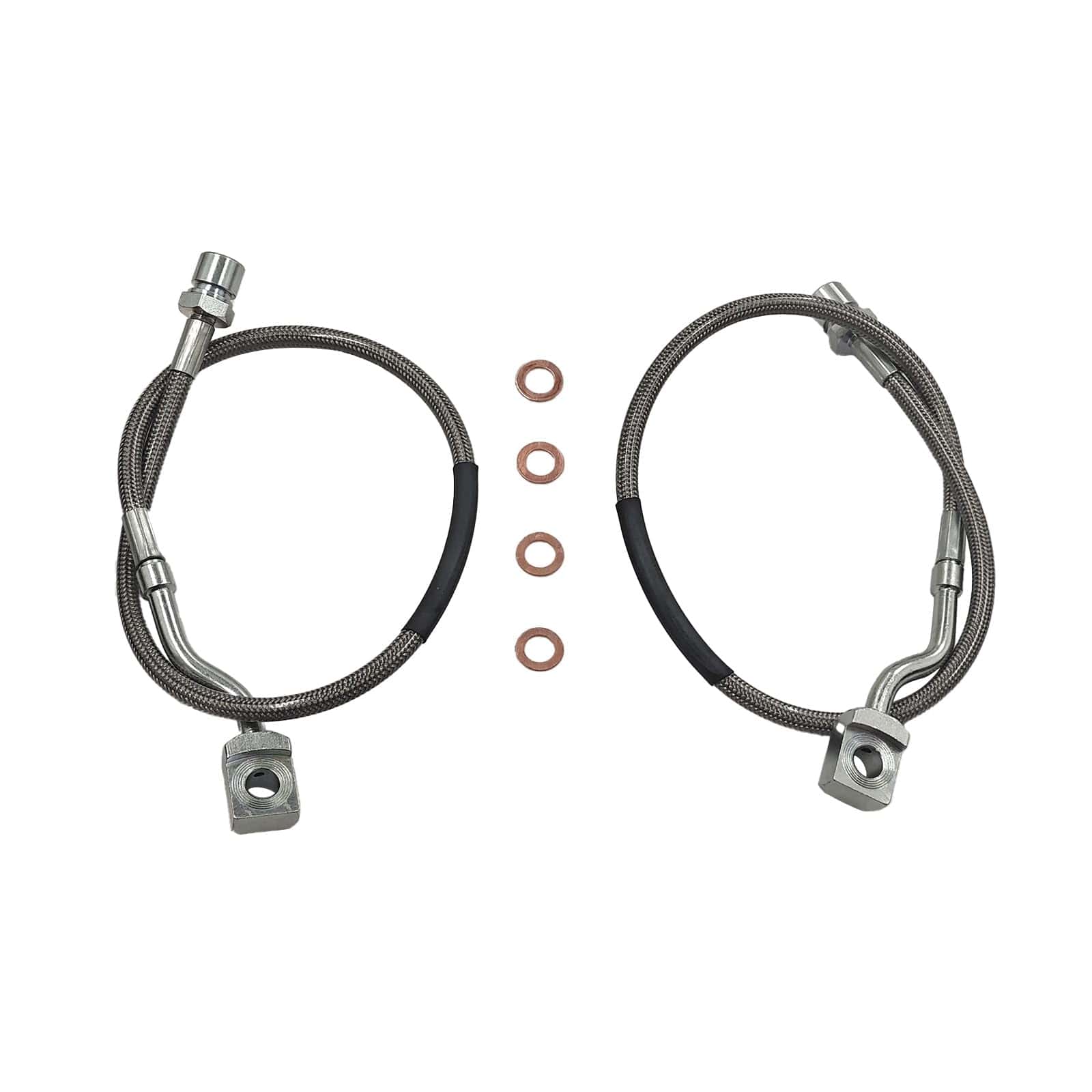 Líneas de freno delanteras 89370 para GM 2007-2019 1500/11-19 2500/3500HD. Hechas de línea trenzada de acero inoxidable de alta calidad, estas líneas de freno son duraderas y duraderas. No se incluyen instrucciones de instalación, por lo que se recomienda que un profesional realice la instalación. Mejora la seguridad y el rendimiento de tu vehículo con estas líneas de freno de alta calidad.