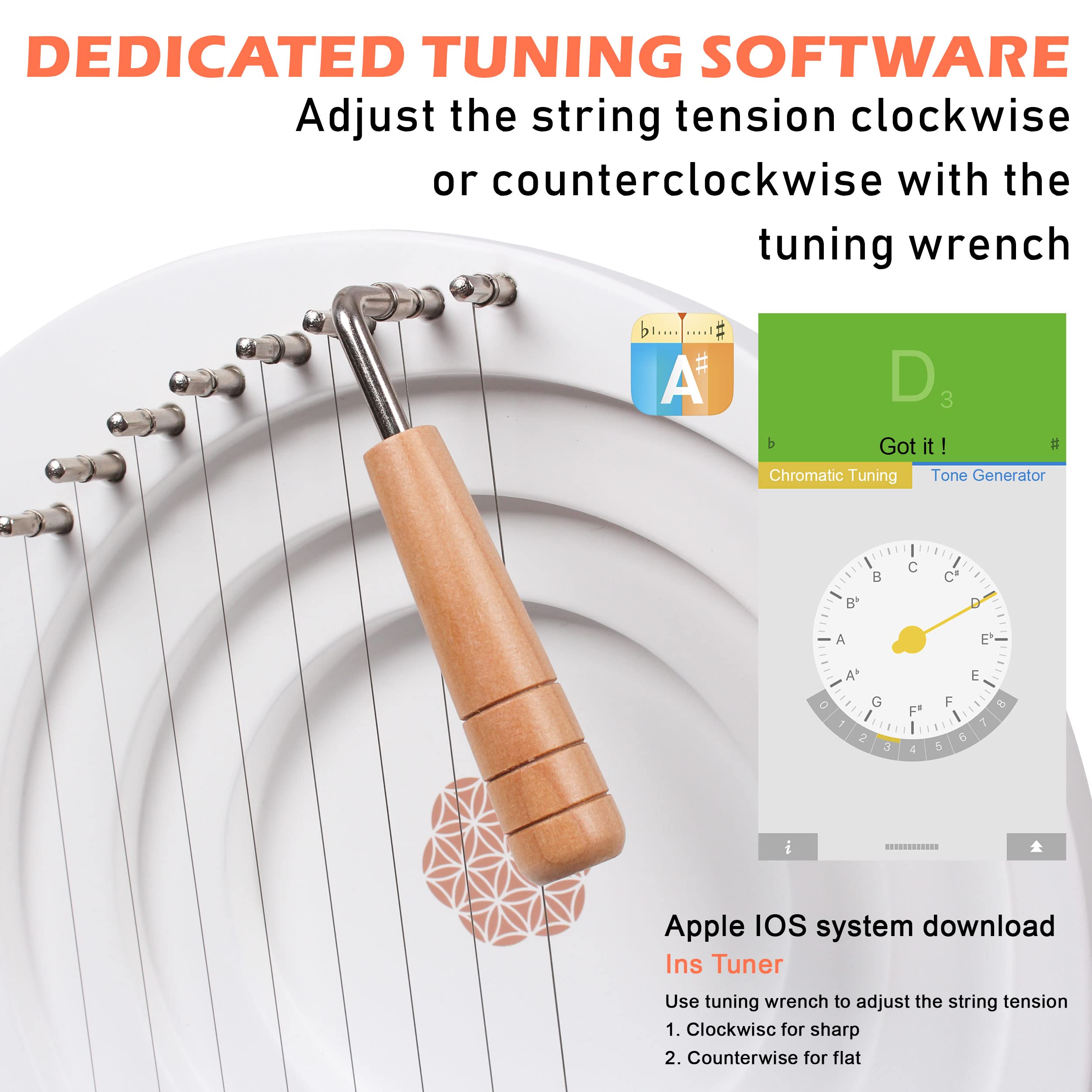 Lira arpa de luna llena de 8 cuerdas LOMUTY con llave de