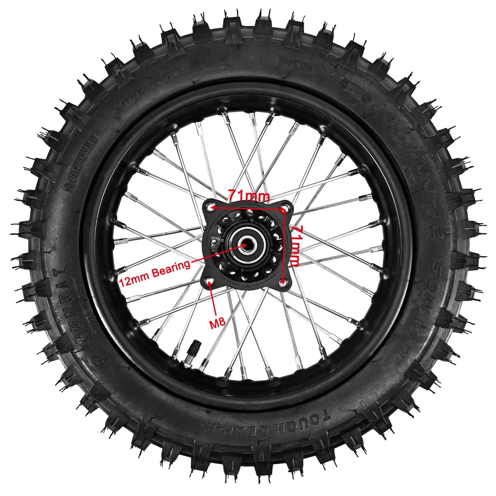 Ensamblaje de llanta trasera completa de 80/100-12. Adecuado para motocicletas de tierra.