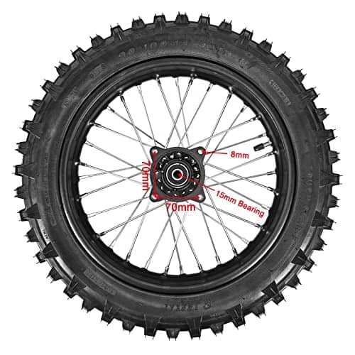 Montaje de rueda trasera de 14″ para motocicletas de tierra. Incluye 1 llanta + 1 rin + 1 tubo interior. Los tamaños de los neumáticos varían según el vehículo, por favor verifique los tamaños de su neumático y rueda actuales antes de realizar el pedido. Si tiene alguna pregunta sobre nuestro ensamblaje de rueda trasera, contáctenos a tiempo y le daremos la forma más adecuada de resolverlo.