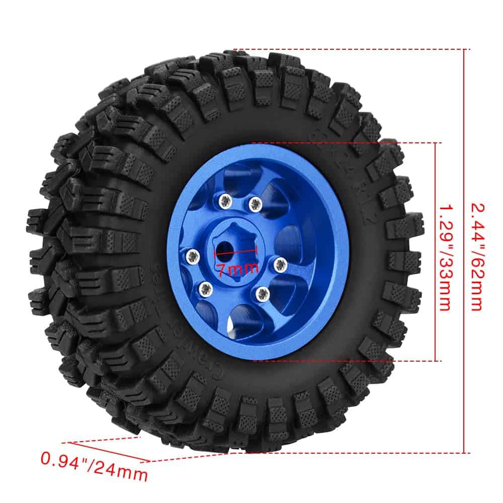 Diámetro exterior de los neumáticos de goma: 2.44″(62 mm)