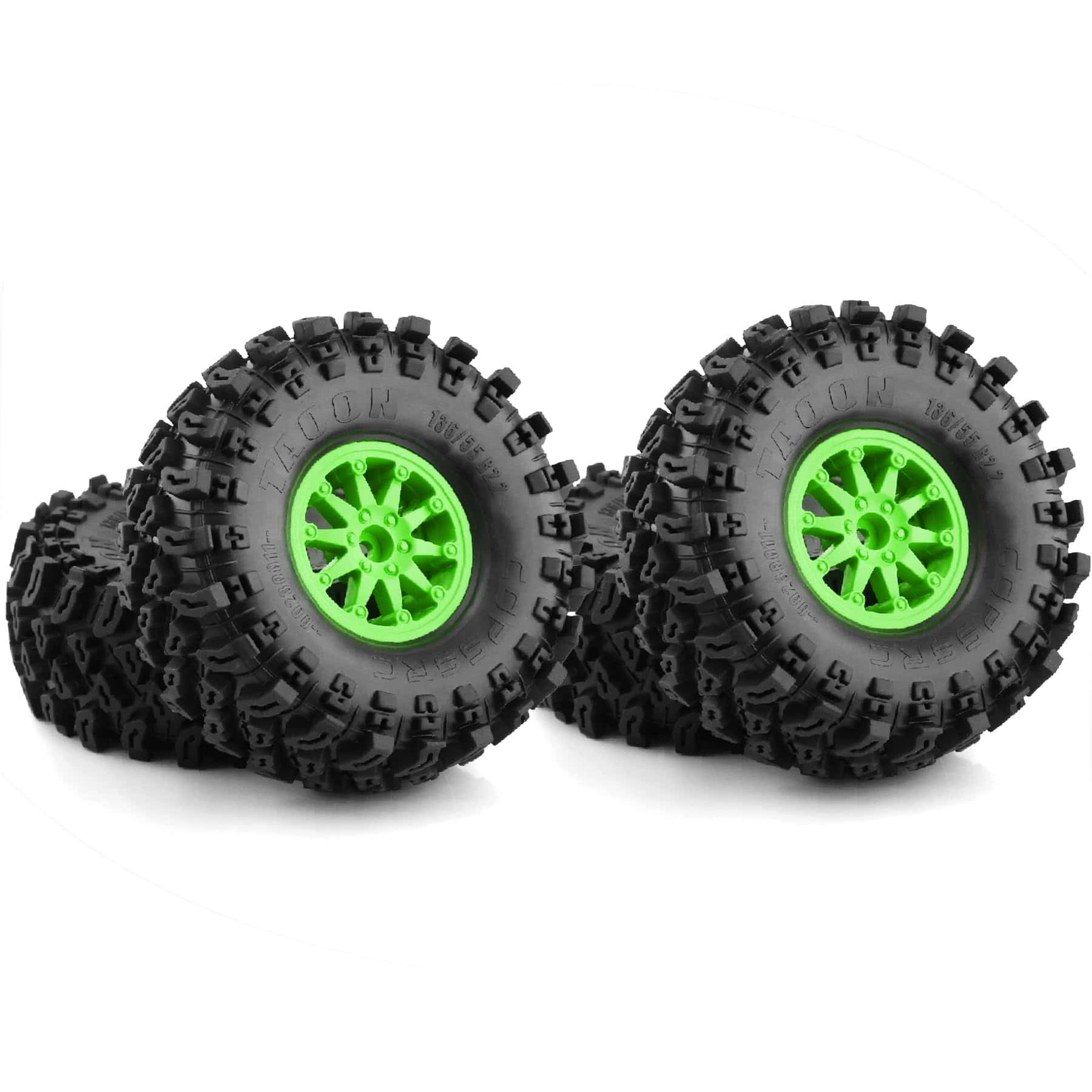 Estos neumáticos de crawler 2.2 tienen un diámetro exterior (altura): 136 mm, diámetro interno: 55 mm, ancho: aproximadamente 55 mm. Por favor, revise la información de tamaño de los neumáticos 2.2 de RC antes de comprar. Para obtener el equilibrio perfecto entre apariencia a escala y rendimiento. Estos neumáticos de rock crawler RC 2.2 tienen una excelente mano de obra y estilo perfecto, son fáciles de desmontar e instalar, más convenientes de usar. Los neumáticos para crawler RC 2.2 cumplen los requisitos para todo terreno y ofrecen una tracción increíble en césped, tierra, barro, desierto, nieve, arena y terrenos sueltos. Los neumáticos y ruedas para coches de crawler 1/10 tienen una excelente mano de obra, estilo perfecto, están equipados con un fuerte acolchado, resistencia al desgaste y durabilidad excelentes, lo que les permite soportar carreteras ásperas y una conducción pesada, mejorando eficazmente la estabilidad y el rendimiento del coche de RC. Las ruedas de 1/10 adoptan un material de calidad, seguro y ecológico, firme y duradero, los neumáticos mejoran la estabilidad y el rendimiento del coche de RC. La banda de rodadura de los neumáticos 1/10 de RC es definitivamente más profunda y grande que otros neumáticos de lodo de RC 2.2, pero no rozan contra el cuerpo. Estos neumáticos de 2.2 hacen un mejor rendimiento en condiciones de lodo y humedad.