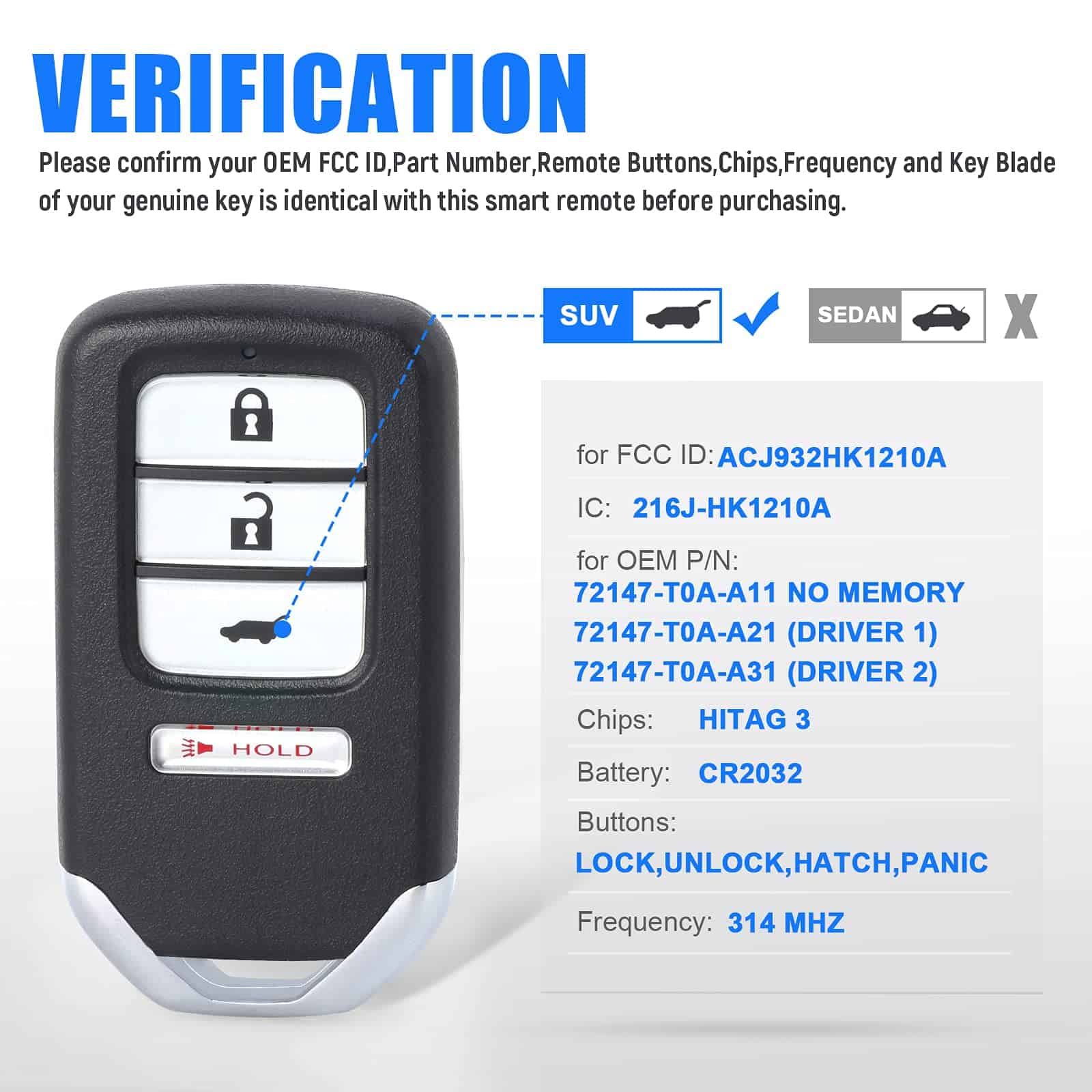 Llave de Coche del Control Remoto de Entrada sin Llave para