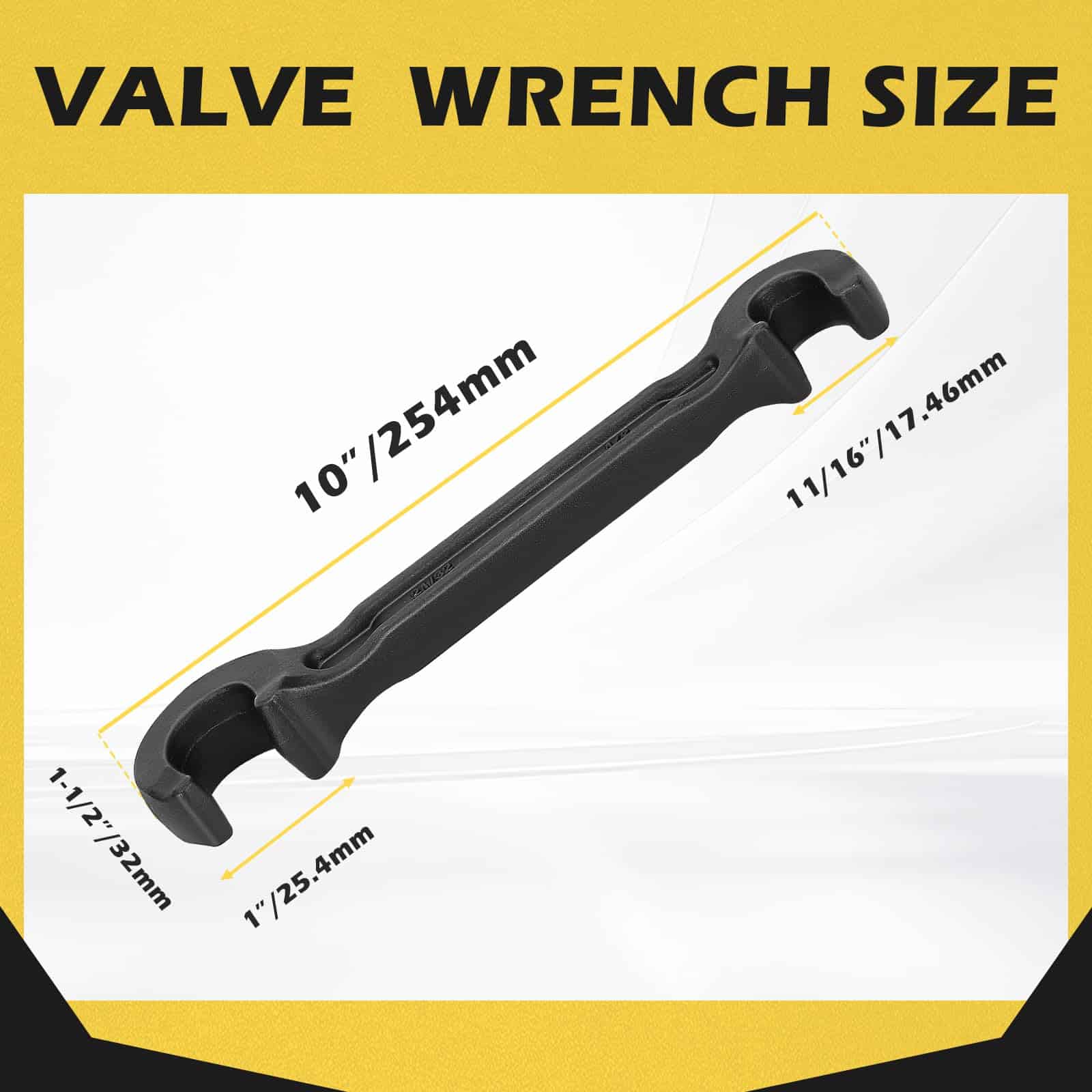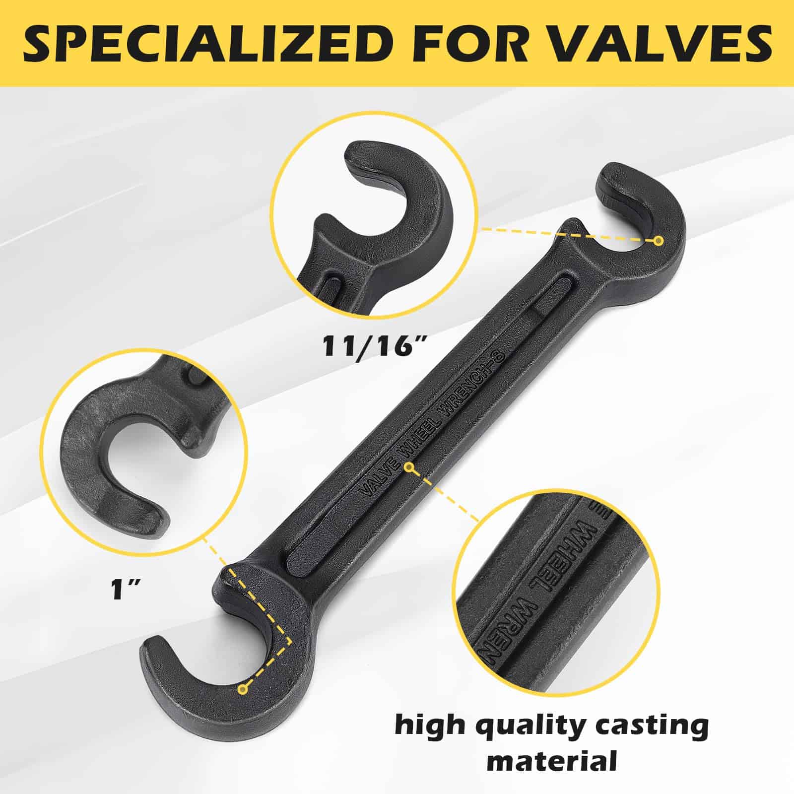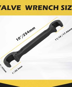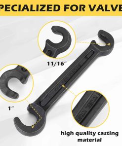 1. Diseño Versátil de Doble Cabezal: Nuestra llave de válvula cuenta con un diseño de doble cabezal con tamaños de 1 pulgada y 11/16 pulgada, lo que le permite abordar diversas tareas de válvulas con facilidad. Con una longitud de 8 pulgadas, esta herramienta permite un manejo flexible, simplificando eficazmente sus reparaciones sin necesidad de cambiar entre múltiples herramientas.