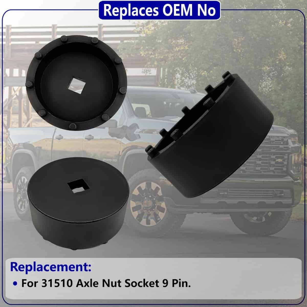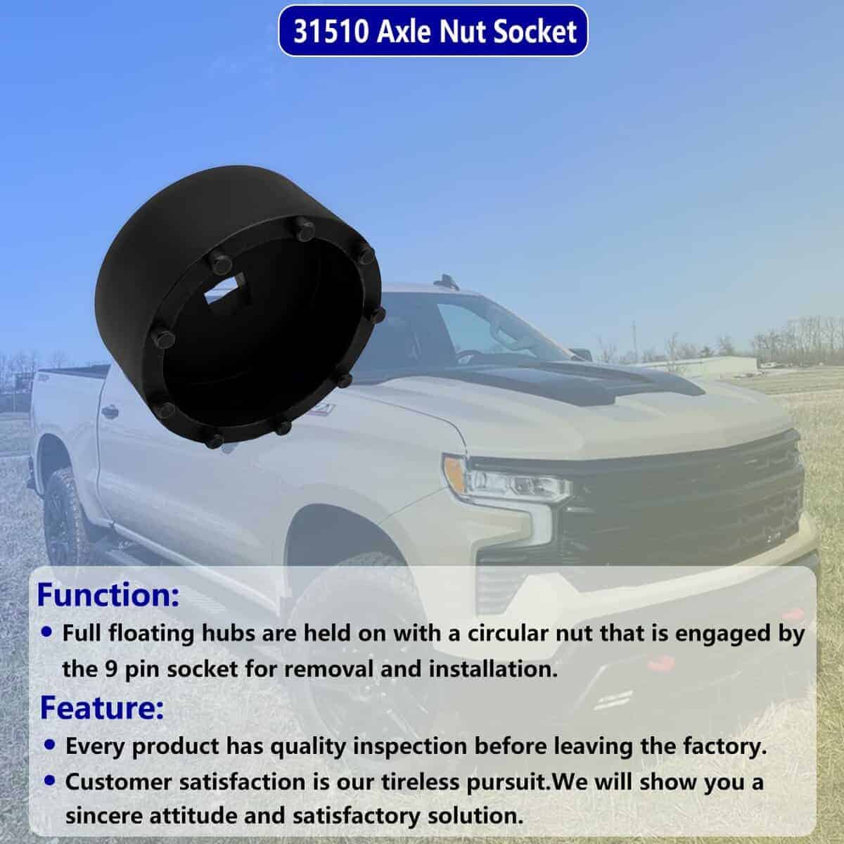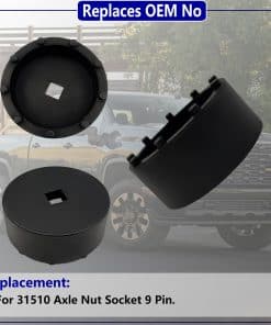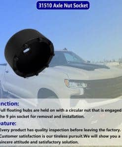Llave de Tuerca de Eje 31510 de 9 Pines es un reemplazo de alta calidad para su vehículo GM, especialmente diseñada para ajustarse a las camionetas Silverado y Sierra 2500/3500 fabricadas a partir de 2020 y otros vehículos que tengan cubos de eje trasero doble de 11.5″ y 12″ o una tuerca de eje con un diámetro exterior de 2.97″. Esta llave de tuerca de eje es esencial para remover e instalar las tuercas circulares que mantienen los cubos flotantes en su lugar. Con una construcción resistente y duradera, este producto ha pasado por una rigurosa inspección de calidad para garantizar su funcionamiento correcto. Nuestra prioridad es la satisfacción del cliente, por lo que ofrecemos una actitud sincera y soluciones satisfactorias en caso de cualquier problema.