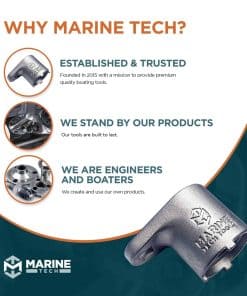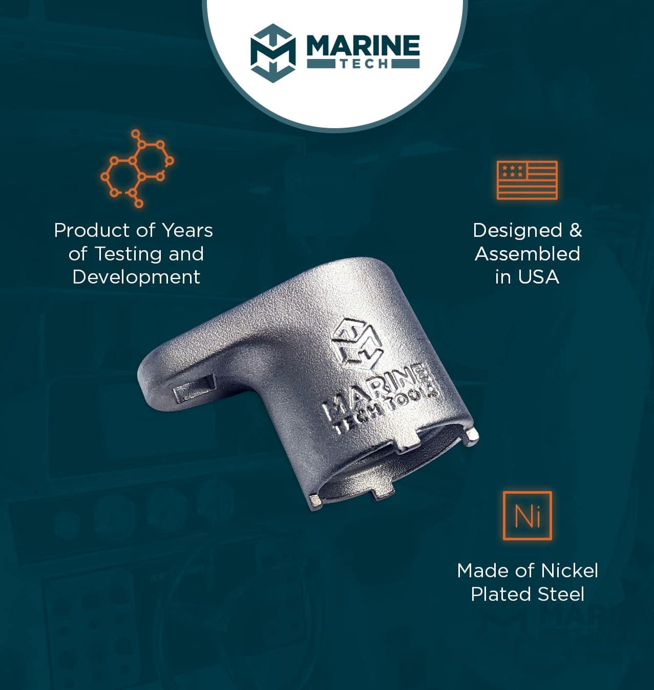 Esta herramienta está fabricada en acero niquelado que proporciona una combinación de resistencia a la corrosión y al desgaste. En Marine Tech Tools estamos comprometidos en apoyar a dueños de botes y mecánicos en su estilo de vida náutico a través de las herramientas que creamos. Como un pequeño negocio ubicado en Charleston, Carolina del Sur, EE. UU., nos enorgullecemos de todas nuestras herramientas. Están diseñadas para durar y respaldadas con una garantía.