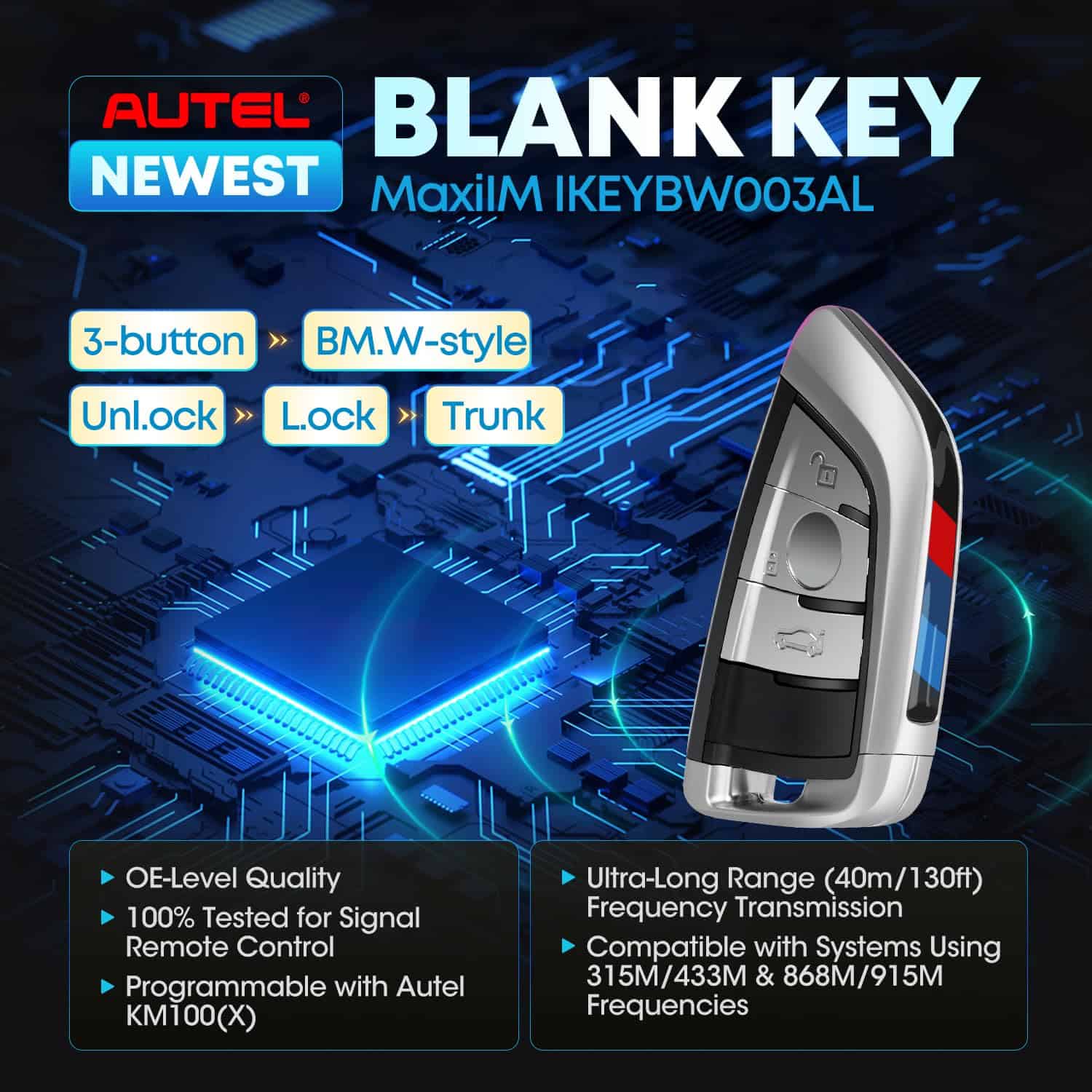 2. Construido con la última tecnología: Llave Fob en Blanco de Proximidad Autel es un reemplazo nuevo de alta calidad sin manos para vehículos selectos con acceso de encendido de botón. Reemplace rápidamente su llave fob perdida o rota con esta Autel MaxiIM IKEYBW003AL. Nuestra llave fob remota está diseñada con funcionalidad de alta seguridad, que cumple o supera los estándares de la industria y regulatorios. Calidad OE, Transmisor de Banda Dual, Multi-Frecuencia 315MHz/434MHz o 868MHz/915MHz, Admite Transmisión de Frecuencia de Ultra-Largo Alcance (40 metros/130 pies).