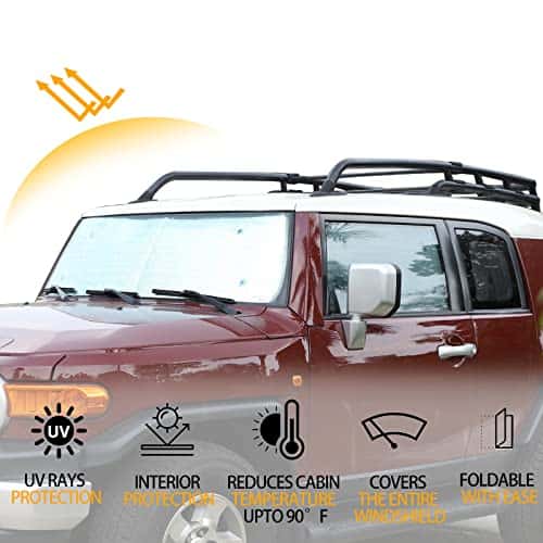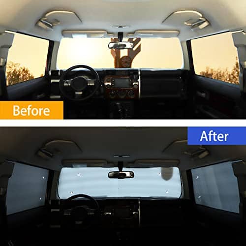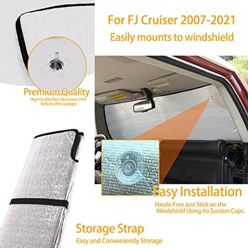 LLKUANG ofrece una amplia gama de accesorios para mejorar y actualizar tanto la apariencia como la funcionalidad de tu vehículo. Agradecemos sinceramente tu decisión de comprar nuestros productos, siempre nos comprometemos a proporcionar productos decorativos automotrices seguros y de alta calidad, así como un servicio al cliente excelente y profesional. Compatibilidad: para Toyota FJ Cruiser 2007-2021 Condición: 100% nuevo Material: Material reflectante de aluminio de alta calidad combinado con material de doble capa de burbujas Color: Plateado Características: El protector solar para coche Toyota FJ Cruiser 2007-2021 es capaz de reflejar el 90% de la luz solar y el calor que entra a través del vidrio del parabrisas, reduciendo así el calor dentro del coche, haciendo que el interior del coche sea más fresco, garantizando comodidad al conducir y reduciendo el tiempo de enfriamiento del aire acondicionado, ahorrando consumo de combustible. El protector solar para parabrisas de coche con bloqueo superior de rayos UV (más del 95%) y reducción insuperable de calor (más del 90%). Reduce la grieta y decoloración de accesorios y el calor sofocante causado por la exposición al sol dentro del coche. Debido a que el mismo modelo de coche puede producirse de manera diferente en diferentes países. Asegúrate de que la parte de tu coche sea como muestra nuestra imagen, o no encajará, si hay alguna diferencia, contáctanos antes de la compra, ¡gracias! 1pc/juego de Protector Solar para Parabrisas de Coche LLKUANG tiene otros accesorios universales de interior, por favor visita nuestra tienda en detalle. ¡Encontrarás más accesorios automotrices para tu satisfacción, gracias!