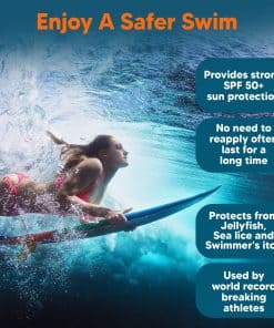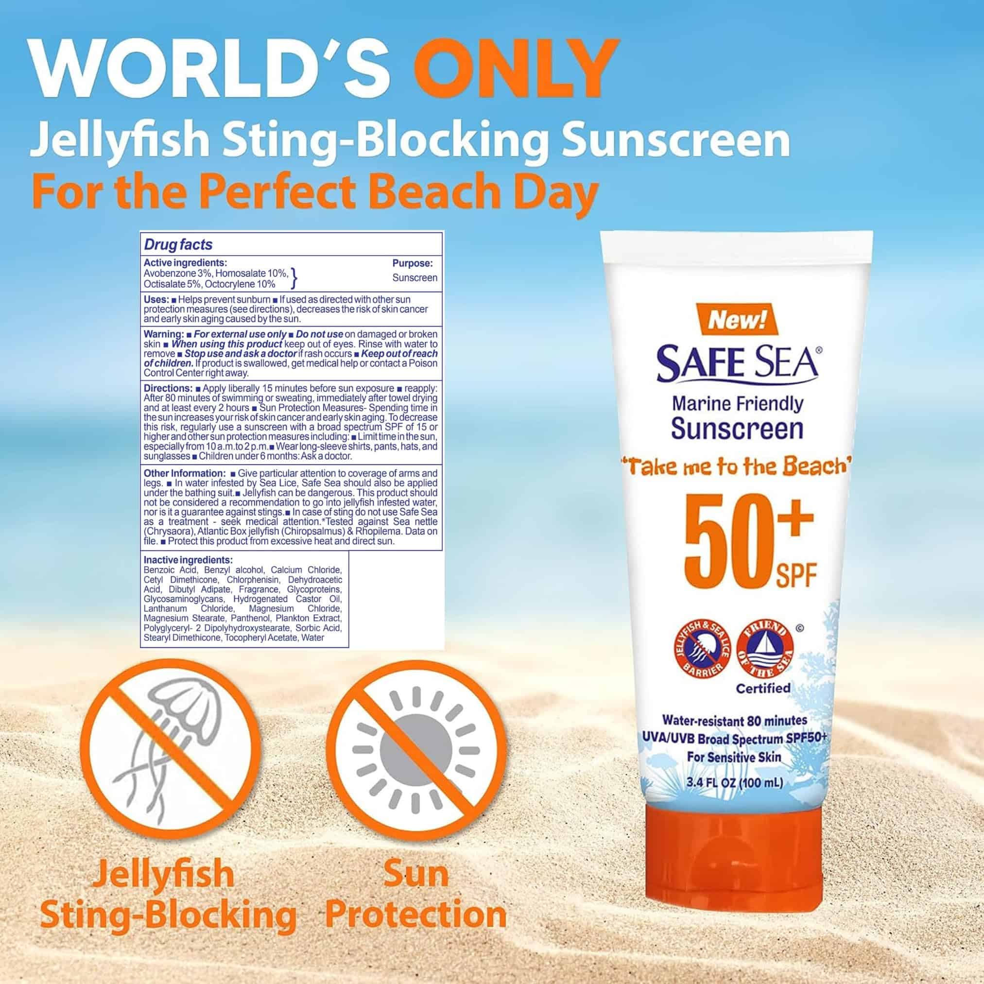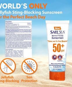 La loción protectora contra picaduras de medusas Safe Sea es el complemento perfecto para tus días de playa y mar. Con un factor de protección solar de SPF 50+ y una fórmula única que bloquea las picaduras de medusas, piojos de mar y otros irritantes marinos, podrás disfrutar del sol sin preocupaciones.