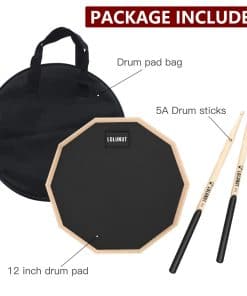La almohadilla de práctica de tambor de 12 pulgadas es lo suficientemente pequeña como para ser altamente portátil y liviana, pero lo suficientemente grande como para ser súper efectiva y llevarla a donde quieras.