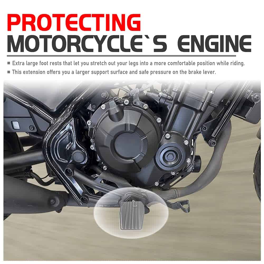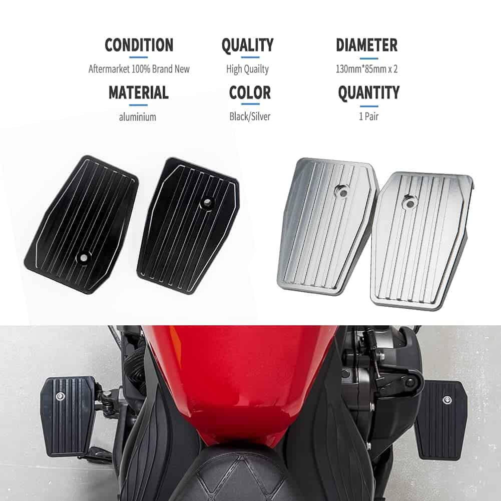 1. Ajuste: Pedal de reposapiés ancho para motocicleta se adapta perfectamente a Rebel CMX500 2017-2024; para Rebel CMX300 2017-2024. Esta es una pieza de repuesto de mercado secundario. Se utiliza para reemplazar o reparar problemas defectuosos. No es una pieza genuina del fabricante. Por favor, confirme si el artículo puede adaptarse a su motocicleta antes de realizar el pedido. 2. Material: pedales de motocicleta hechos de aluminio CNC, y anodizados con un revestimiento extra duro para resistir arañazos y rozaduras. Plataforma extra ancha para mejorar la comodidad y control. 3. Cantidad: 1 par (izquierda + derecha) de pedales de control de reposapiés para Rebel 500 300 17 18 19 20 21 22 23 24 viene con los accesorios de montaje. Color: Negro/Plata, igual que la imagen mostrada. 4. Características: 1. Reposapiés extra grandes que le permiten estirar las piernas a una posición más cómoda mientras conduce. 2. Estos reposapiés permiten a los motociclistas un rango de ajuste que no es posible con otros reposapiés estilo abrazadera. 3. Puede aumentar el área de tráfico, por lo que será más estable. 5. Garantía de calidad: No solo vendemos productos, sino que también brindamos servicios profesionales. Incluyendo consulta previa a la venta, seguimiento de carga y servicio postventa para hacer que su experiencia de compra sea más placentera. Si tiene alguna pregunta, no dude en contactarnos por correo electrónico y le responderemos lo antes posible.