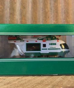 Tres juguetes en miniatura de la marca Hess con modelos de 2003, 2007 y 2011, que incluyen un coche de patrulla, un camión de rescate y un transporte de helicóptero. Perfecto para los coleccionistas y amantes de los camiones de juguete.