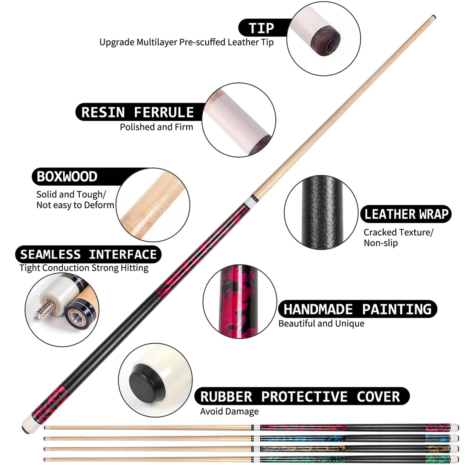LOTKEY Palo de Billar, Taco de Billar 58» 21 oz con 2