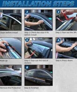 2. Artículo ofrecido: 4 piezas de viseras de ventana con tinte ahumado y ribete cromado.