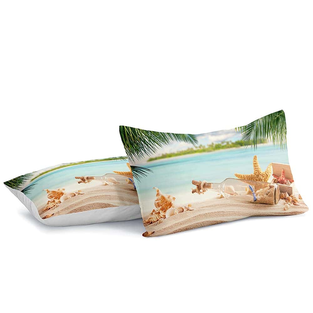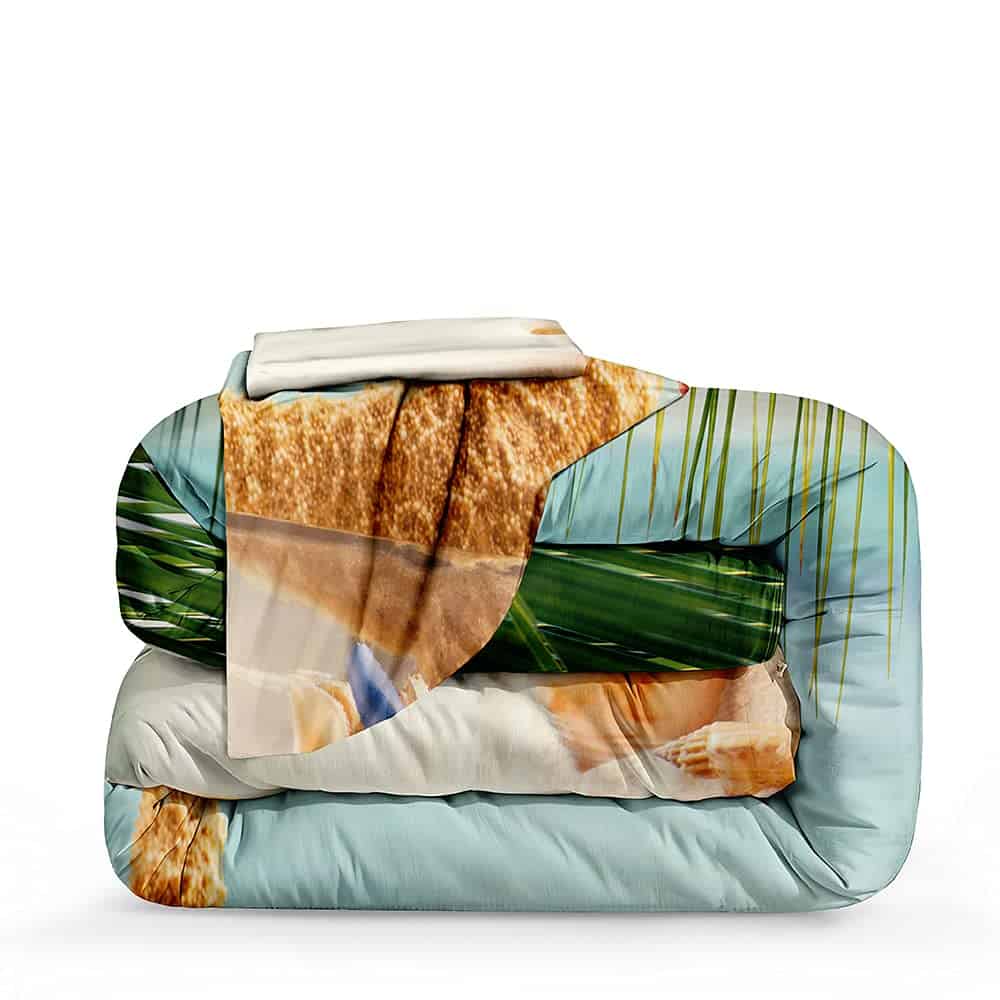 Diseño Características atractivos patrones de la vida marina costera para la decoración de ropa de cama, el color del edredón temático de la playa será muy uniforme y natural, sin decoloración.