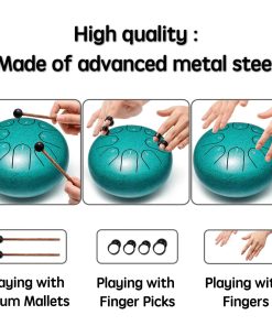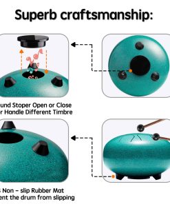 ÚTIL PARA Reducción del Estrés y la Ansiedad Relajación Profunda Músicos y Profesores Curación Holística y Práctica de Reiki Curación Espiritual Auto-Hipnosis Decoración del Hogar Regalo Lronbird Steel Tongue Drum El tambor de lengua de acero está hecho de una aleación de acero-titanio y cortado con precisión por artesanos profesionales para hacer que 8 notas se pronuncien con precisión para obtener un tono etéreo ideal, suave y largo, que ayuda a eliminar preocupaciones, relajar la mente y aliviar la ansiedad, viene con una partitura de música fácil de aprender para principiantes de todas las edades. Corte Manual Preciso Mediante el proceso de corte manual, se pronuncian con precisión 8 notas, el sonido es etéreo y el efecto de resonancia es bueno. La tecnología de pintura en spray de galvanoplastia forma una película protectora en la superficie del tambor de lengua de acero, que no es fácil de pelar y corroer. Base de Silicona Estable Los pies de silicona a prueba de golpes y el sellado en la parte inferior del tambor de lengua hacen que el sonido sea más suave y fuerte, Es simple y divertido de aprender, no se necesita práctica especial para tocar una bella melodía. Siga las notas en la hoja de música una por una. Grandes regalos para la iniciación a la música de los niños, regalos de Navidad y cumpleaños para amigos a los que les gusta la música. Tambor de Acero de 6 Pulgadas y 8 Notas Es fácil aprender a tocar el tambor de lengua de acero sin teorías complicadas. Puedes tocar un ritmo hermoso después de dominar el ritmo básico. Es adecuado para principiantes a los que les gusta tocar instrumentos musicales. Debido a su hermoso sonido, puede purificar el alma y cultivar el sentimiento, mejorar la espiritualidad, aliviar el estrés después de todo el día de trabajo, ayudarte a encontrar paz en la vida. Los auténticos tambores de lengua de acero se pueden utilizar para diversos fines. Estos tambores son excelentes regalos de yoga para hombres y mujeres, regalos de meditación, regalos espirituales y se pueden utilizar para la decoración del hogar y de la habitación también. Son perfectos para cualquier ocasión y son regalos reflexivos. Son un regalo maravilloso de cumpleaños.
