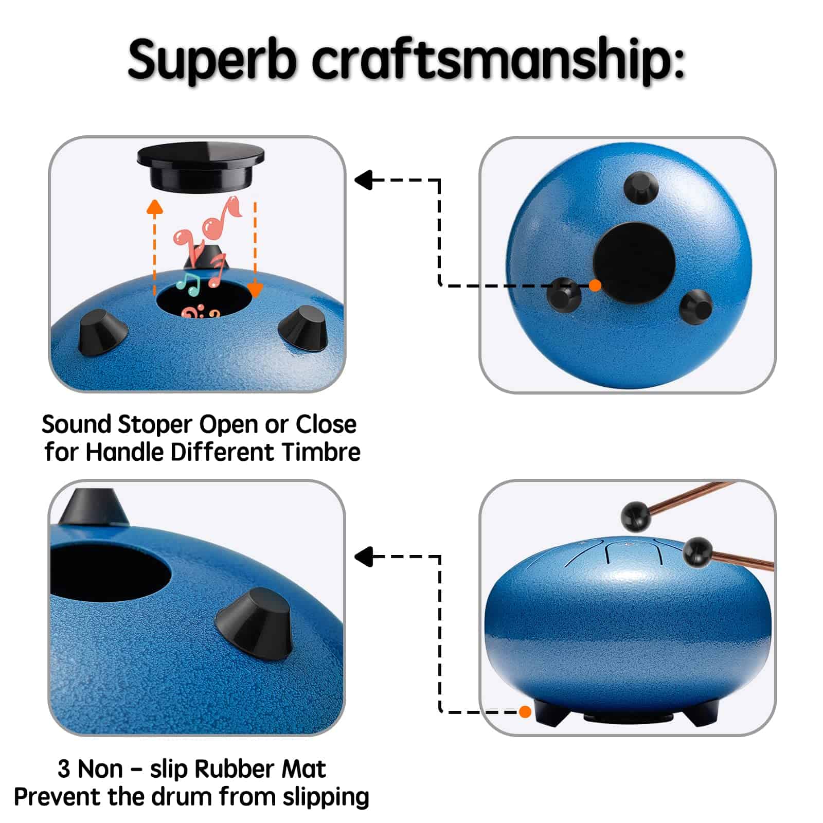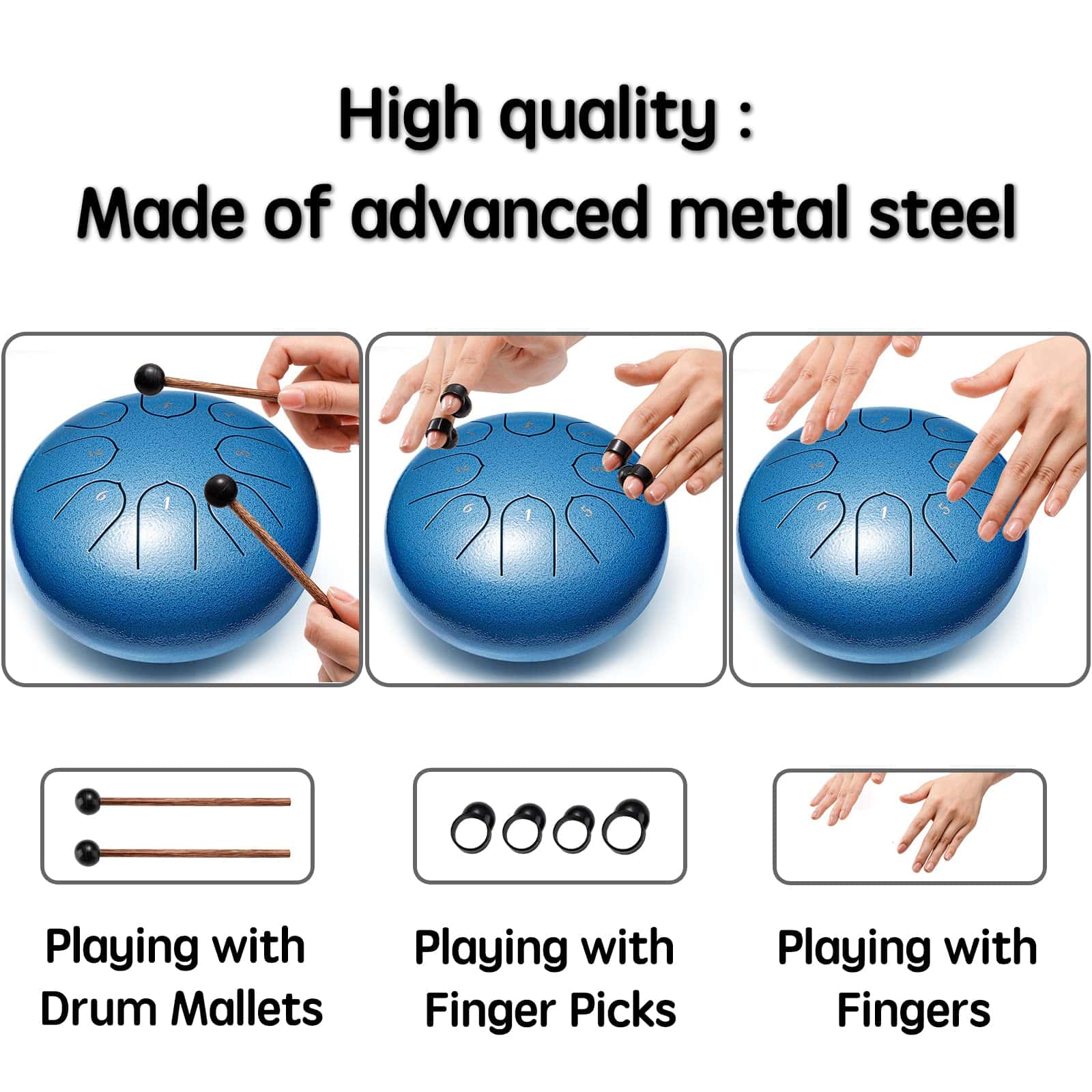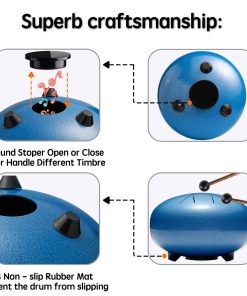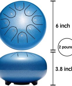 FÁCIL DE JUGAR ÚTIL PARA Reducción del Estrés y la Ansiedad Relajación Profunda Músicos y Maestros Sanación Holística y Práctica de Reiki Sanación Espiritual Autohipnosis Decoración del Hogar Regalo Lronbird Steel Tongue Drum El tambor de lengua de acero está hecho de una aleación de acero-titanio y cortado con precisión por artesanos profesionales para que las 8 notas se pronuncien con precisión para obtener un tono etéreo ideal, suave y prolongado, que ayuda a eliminar las preocupaciones, relajar la mente y aliviar la ansiedad, viene con partitura que es fácil de aprender para principiantes de todas las edades. Corte Manual Preciso Utilizando el proceso de corte manual, se pronuncian con precisión las 8 notas, el sonido es etéreo y el efecto de resonancia es bueno. La tecnología de pintura en spray de galvanoplastia forma una película protectora en la superficie del tambor de acero, que no es fácil de pelar y corroer. Base de Silicona Estable Los pies de silicona a prueba de golpes y el sellado en la parte inferior del tambor de lengua hacen que el sonido sea más suave y fuerte. Simple y divertido de aprender, no se requiere práctica especial para tocar una hermosa melodía. Siga las notas en la partitura de música una por un. Excelentes regalos para la educación musical de los niñ, regalos de Navidad y cumpleaños para amigos a los que les gusta la música. Tambor de Lengua de Acero de 6 Pulgadas 8 Notas Es fácil aprender a tocar el tambor de lengua de acero sin teorías complicadas. Puedes tocar un ritmo hermoso después de dominar el ritmo básico. Es adecuado para principiantes a los que les gusta tocar instrumentos musicales. Debido a su hermoso sonido, puede purificar el alma y cultivar el sentimiento, mejorar la espiritualidad y aliviar el estrés después de un día completo de trabajo, ayudarte a encontrar la paz en la vida. Auténticos tambores de lengua de acero pueden ser utilizados para diversos fines. Estos tambores son excelentes regalos de yoga para hombres y mujeres, regalos de meditación, regalos espirituales y se pueden utilizar como decoración del hogar y de la habitación. Son perfectos para cualquier ocasión y son regalos pensados. Son maravillosos regalos de cumpleaños.