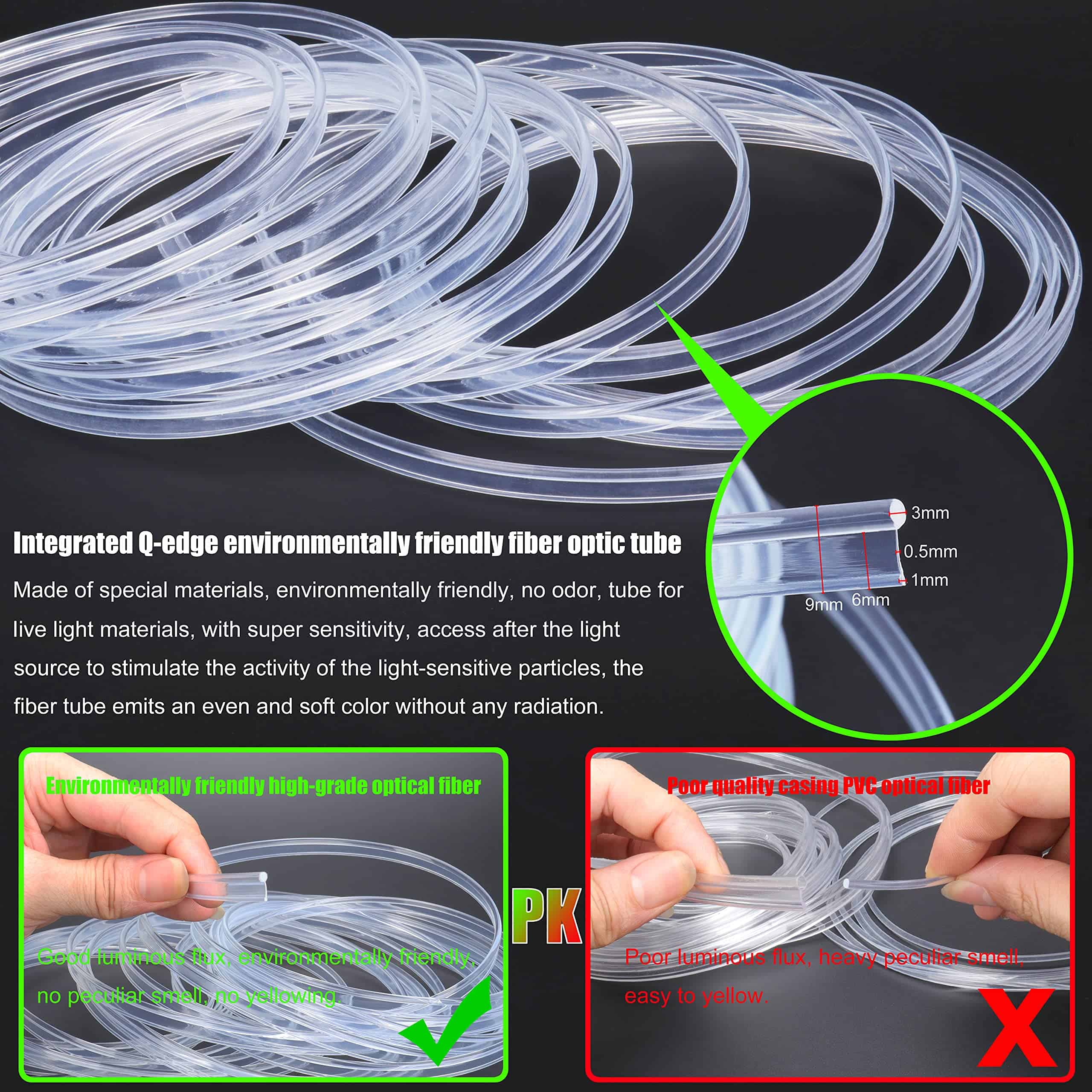 Si el brillo del extremo de la fibra óptica es oscuro, se recomienda agregar 1 pieza de fuente de luz LED en el extremo para hacer que el cable de fibra óptica cumpla con los requisitos de brillo.