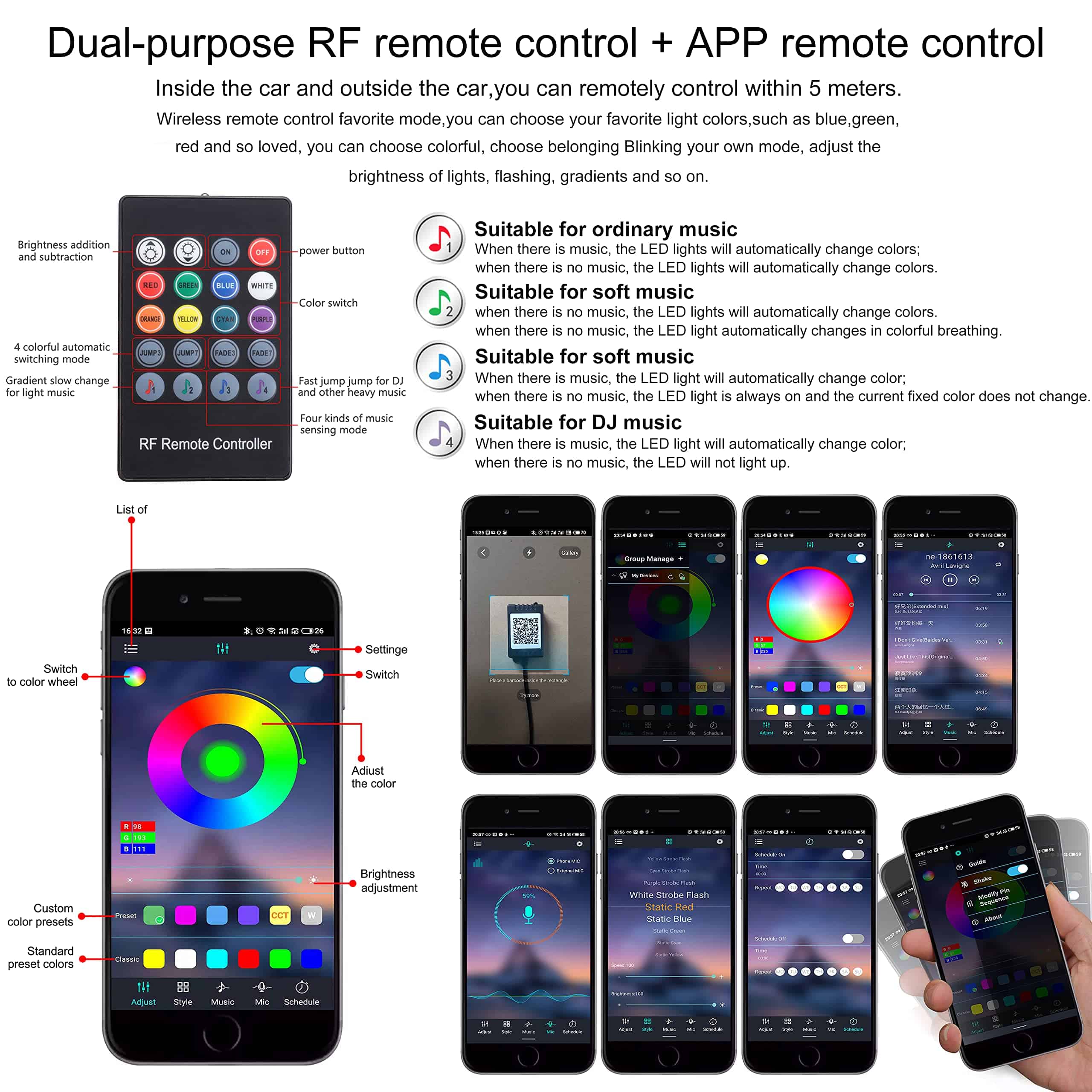 6. Escanea el código QR de este controlador para la iluminación interior de tu auto con tu teléfono (Android/IOS).