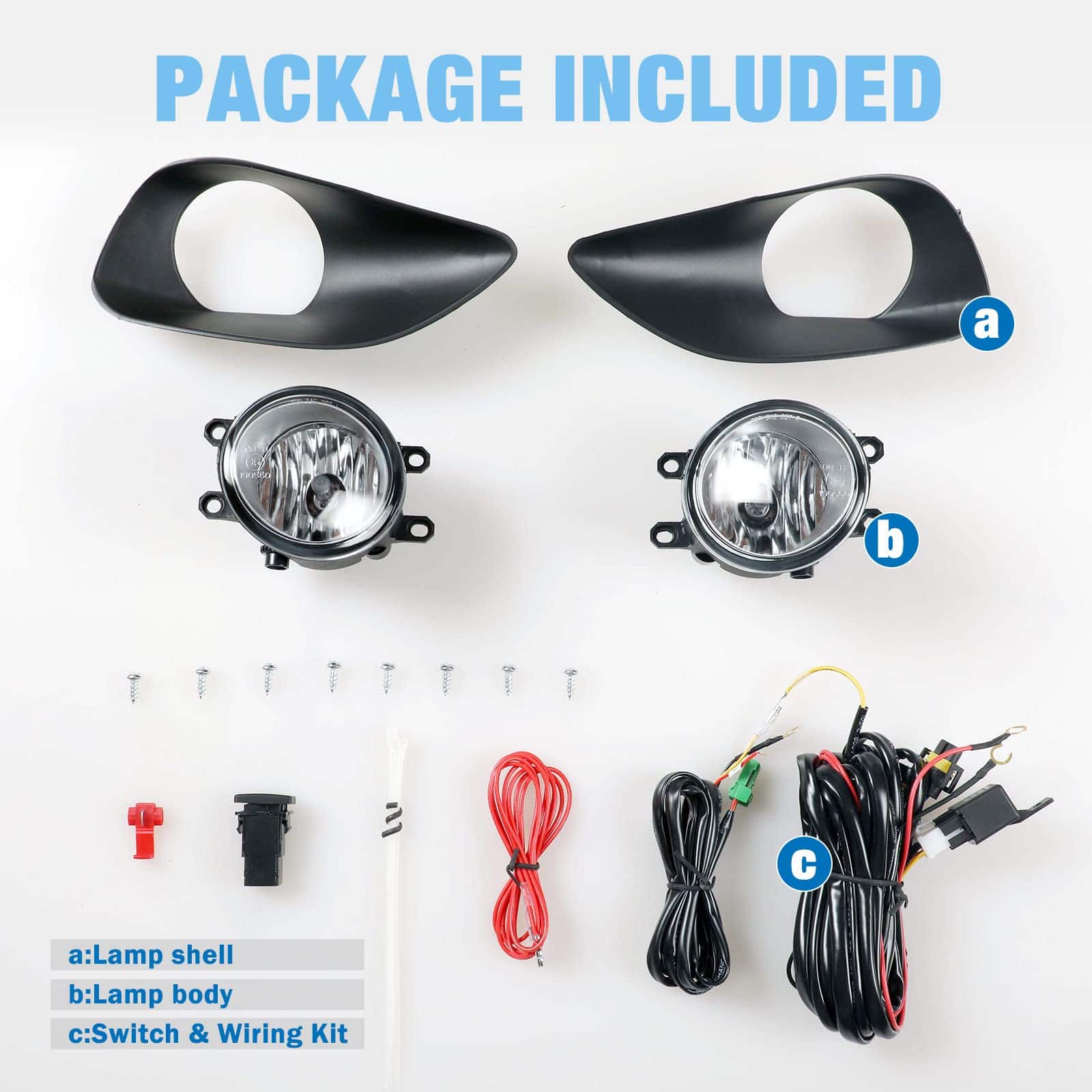 Paquete incluye: 1. Un par de luces antiniebla (lado izquierdo y derecho) 2. Un par de bombillas H11 (en las luces antiniebla) 3. Interruptor y kit de cableado.