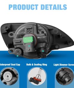 Especificaciones: Tipo de bombilla: H11 12V 55W Tipo de haz: Reflector de halógeno Arnés de cableado: Incluido Certificación: Aprobada por DOT/SAE Acabado de color: Carcasa cromada con lente clara Reemplaza la pieza original (OE): Cuerpo de la luz: L:81220-06070; 81220-0D041; 81220-06071; 81220-0D042; 812200D040; 8122006071; R:8121006071; 812100D040, 812100D041, 812100D042; 81025-0W020; Marco exterior: R:5212752400; L:5212852110 Número de referencia de partes: Cuerpo de la luz: L: SC2592100; TO2592123; R:SC2593100; TO2593123; Marco exterior: R:TO2599104; L: TO2598104.