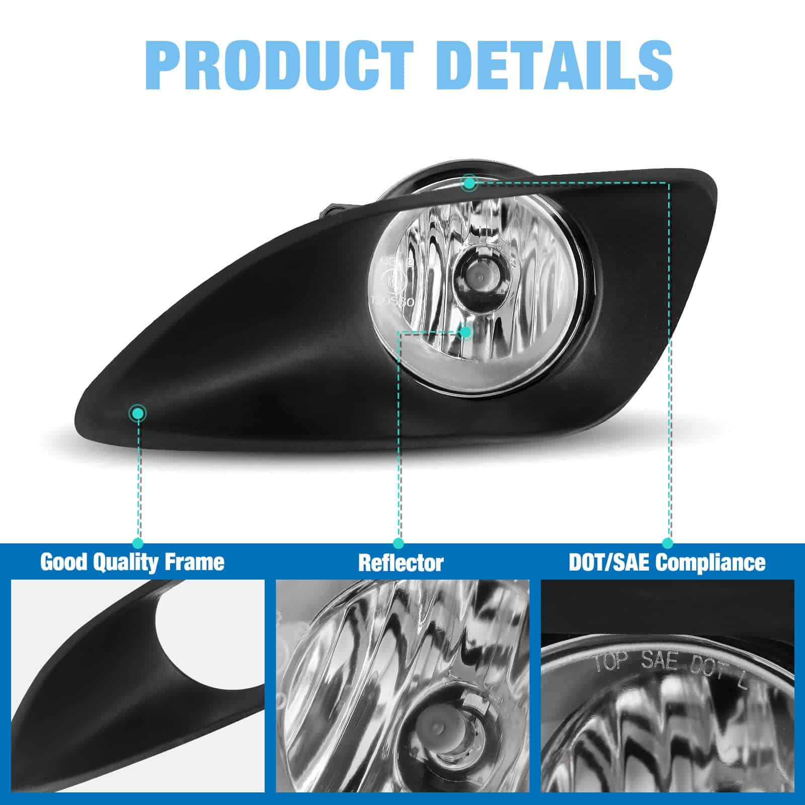1. Ajuste OEM exacto: Ajuste directo para lentes OEM sin modificaciones complejas. Las luces antiniebla son compatibles con Toyota Yaris 2007, 2008, 2009, 2010, 2011, 2012 Sedán. Estas lámparas antiniebla vienen con carcasa cromada y lente clara. Tamaño: 7.38 x 4.04 x 8.36 pulgadas (L x W x H). Se venden en un par: incluyen el lado izquierdo (lado del conductor) y el lado derecho (lado del pasajero).