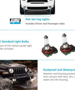 Paquete: Incluye 1 par de luces antiniebla con bombillas de halógeno. (Lado del conductor izquierdo y lado del pasajero derecho)