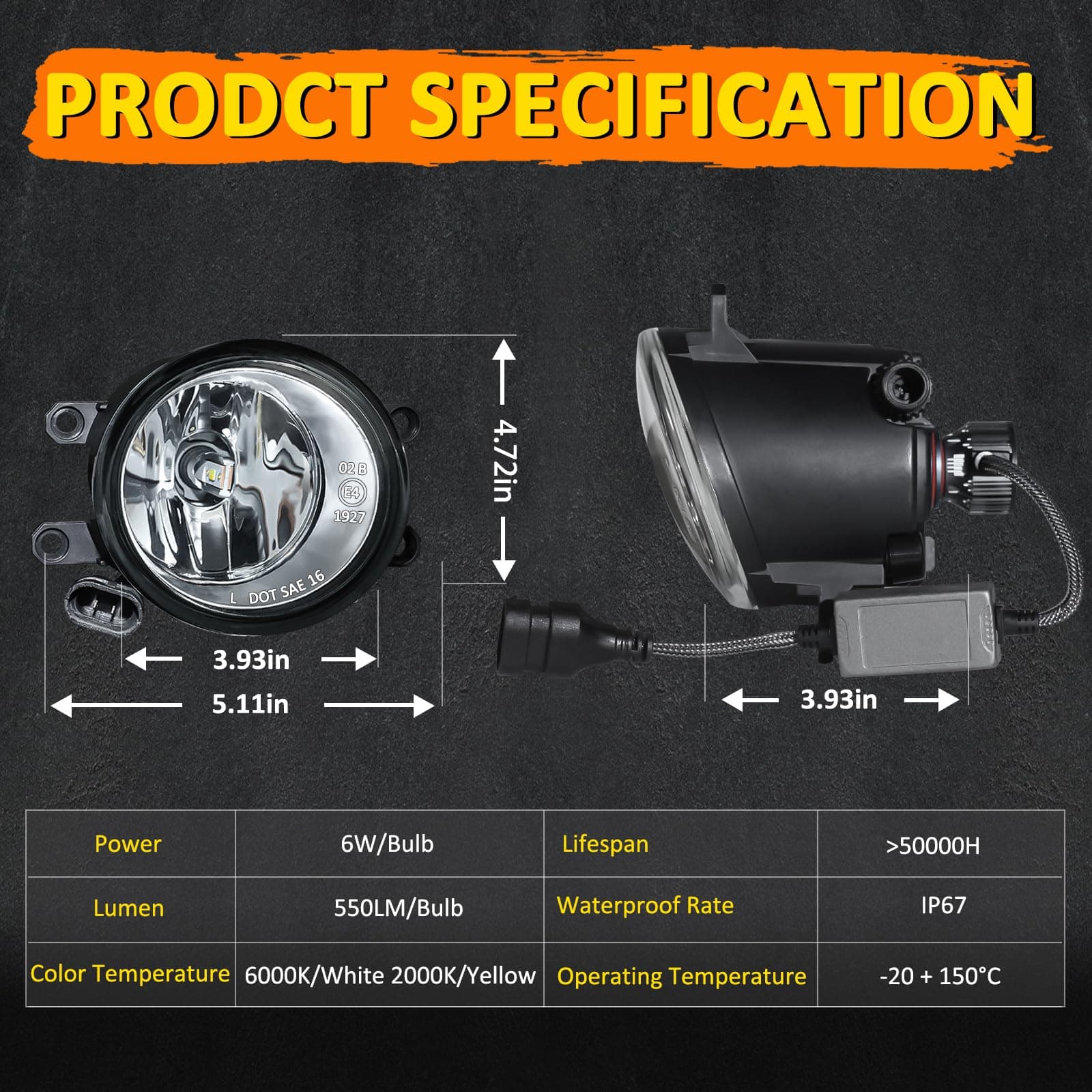 La mala visibilidad en la carretera causada por fuertes nevadas, lluvias o niebla es algo peligroso. Si te encuentras conduciendo en malas condiciones de visibilidad y tus luces altas te están reflejando de vuelta, causando deslumbramientos, entonces un buen juego de luces antiniebla te permitirá ver realmente la carretera. Nuestras luces antiniebla LED cuentan con un diseño de dos colores que se cambian fácilmente para permitirte adaptarte a condiciones climáticas adversas, permitiéndote ver la carretera por delante con una claridad impresionante, emitiendo una iluminación espectacular y un aspecto muy elegante.