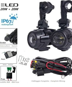 Luces antiniebla para motocicletas, luces auxiliares para motocicletas, soporte protector con interruptor de relé y luces LED antiniebla compatibles con R1200GS ADV F800GS F700GS F650GS K1600 en color negro. Estas luces proporcionan una iluminación adicional para mejorar la visibilidad y seguridad al conducir en condiciones de poca luz o niebla. El soporte protector permite una instalación segura y duradera en tu motocicleta.