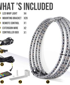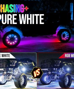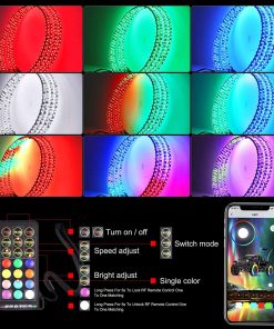 Control dual: Puede ajustar fácilmente el brillo y la velocidad a través de la aplicación o el control remoto, e incluso personalizar cualquier patrón que le guste. El chip del cuadro de control adopta un chip ST para una velocidad de respuesta más rápida. El sensor de sonido incorporado y las luces de aro de rueda LED pueden sincronizar el ritmo de la música de su teléfono. ¡Todo un concierto sobre ruedas! Impermeable IP67: cada luz de rueda para camión está hecha de estructura de aluminio fundido, a prueba de golpes y a prueba de óxido, con una larga vida útil. Las perlas de luz LED están envueltas en un material impermeable IP67 para proteger el LED de la lluvia, la nieve o las carreteras fangosas, para que pueda conducir con confianza. Función de dirección y frenado: señal de giro – ámbar, luz de freno – roja, luz de marcha atrás – blanca. También puede configurar diferentes colores en la aplicación para garantizar su seguridad al conducir. Aplicaciones: apto para Calipers de Freno de Disco de 13″, Borde Interno del Aro de 19″. Se adapta a coches, SUV, Jeep, camiones, carritos de golf, etc. Tenga en cuenta que el rotor debe tener un protector de barro o escudo contra el polvo. Con todo el hardware y el cableado necesario, instalar las luces de aro de rueda puede llevar algo de tiempo, ¡pero estoy seguro de que los resultados lo valdrán!