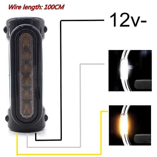 4. Instalación Sencilla: Estas luces de barra se pueden montar vertical u horizontalmente. El cable negro se conecta a tierra, el cable blanco se conecta a la luz de posición (positivo), el cable amarillo se conecta a la luz de giro del lado correspondiente (positivo);.