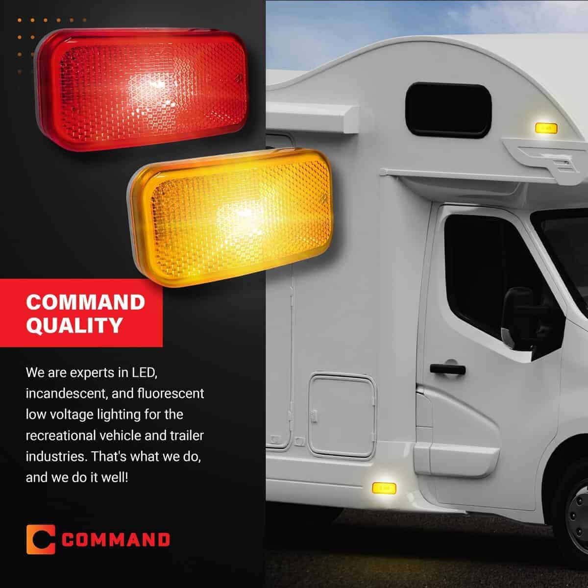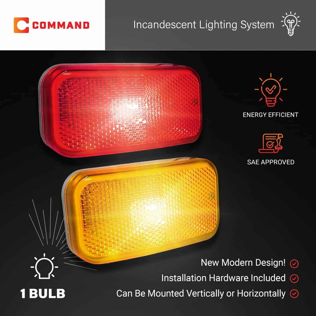 Luces de Claridad de Remolque y RV Incandescente Modernas OEM de Command Electronics 12V – Hechas en Estados Unidos – Amarillo y Rojo, Base Blanca – Paquete de 14. Command Electronics OEM 12V Modern Incandescent RV / Trailer Clearance Light Made in USA Amber & Red, White Base 14-Pack