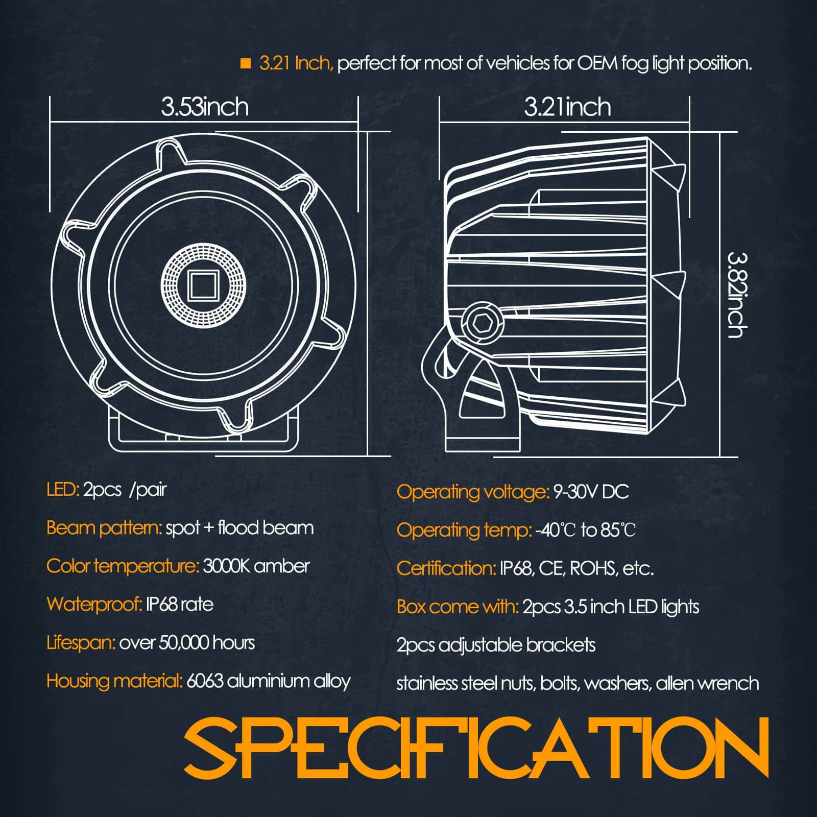 Luces de Conducción LED Ámbar, Nirider 2PCS 50W Redondas