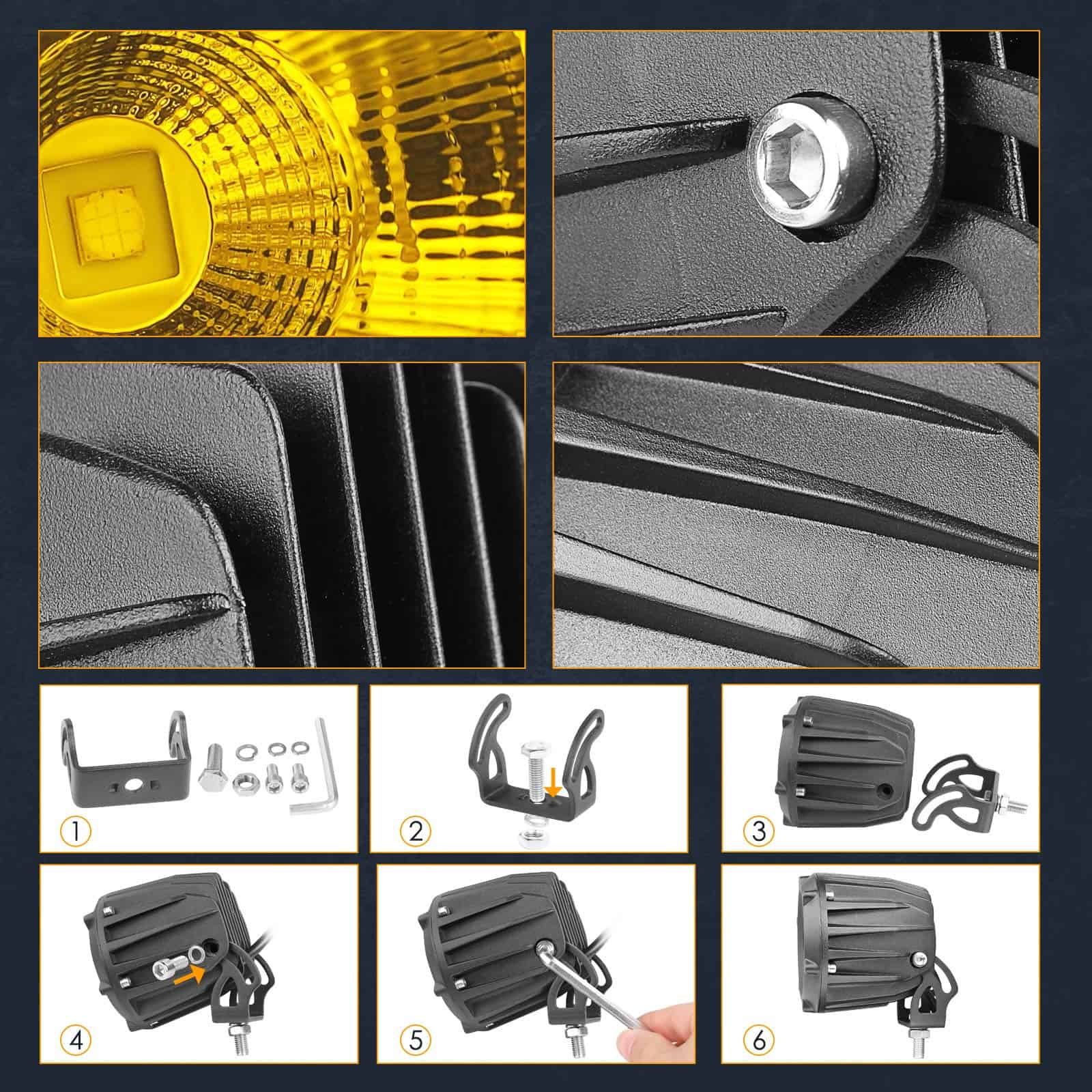 Las luces LED y accesorios de Nirider están diseñados y construidos para ser resistentes, duraderos y con un compromiso absoluto con la calidad. Nuestra misión es diseñar productos únicos premium que iluminen las aventuras de la vida. CARACTERÍSTICAS Color amarillo de 3000K para cortar a través de la niebla, la nieve, el aguanieve y el polvo Impermeable, a prueba de polvo, a prueba de óxido, a prueba de golpes Diseñado para soportar los entornos más hostiles REFLECTOR HÍBRIDO que proporciona un combo de luz perfecto Cuerpo sólido de aluminio extruido para una durabilidad adicional al actuar como disipador de calor ESPECIFICACIONES Potencia: 50W/par Lúmenes: 5,000LM/par Dimensiones del producto: W – 3.5″ x H – 3.8″ x D – 3.2″ Material de la carcasa: aluminio extruido negro Material de la lente: policarbonato resistente a impactos LED de alta intensidad: 2 piezas CREE/par Patrón de haz: punto + inundación Temperatura del color: 3000K Vida útil: 50,000+ horas Cumple con IP68: ingreso de polvo / agua Voltaje de funcionamiento: 9-30V DC Temperatura de funcionamiento: -40 a 58 Certificado por CE & ROHS Garantía de calidad: 24 MESES APLICACIONES Brillante luz amarilla de 3000K que corta la lluvia, la niebla, la nieve, el aguanieve y el polvo para iluminar la carretera y el sendero, permitiéndote ver más lejos que la iluminación tradicional blanca o azul. Este producto compacto y universal se puede instalar en cualquier lugar que consideres adecuado para que sin importar la marca y el modelo que conduzcas. Apto para dirt bike Yamaha, Harley, Polaris, Suzuki, ATV, UTV, SUV, 4×4, coche y todos tus vehículos todoterreno favoritos. Se pueden usar como luces de conducción, lámparas de niebla, luces de trabajo, luces todoterreno y más. CAJA CON 2 luces LED ámbar 2 soportes ajustables tuercas de acero inoxidable, tornillos, arandelas y llave CONTÁCTANOS Nirider se trata de calidad y servicio al cliente. Si necesitas ayuda, por favor contáctanos por correo electrónico. Ve a tu pedido y encuentra el pedido en la lista, haz clic en el botón de contacto con el vendedor
