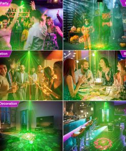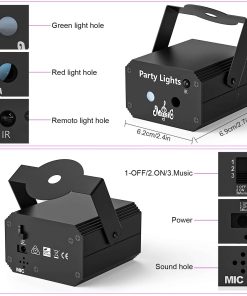 1. Luces de fiesta emocionantes: la nueva luz láser adopta tecnología innovadora para mostrar patrones y efectos de luz, es capaz de producir más de 100 modos de patrón, 3 combinaciones de haz (rojo, verde, rojo y verde). Creando una atmósfera de escenario más colorida y soñadora, potenciando tu experiencia de fiesta con preajustes dinámicos.