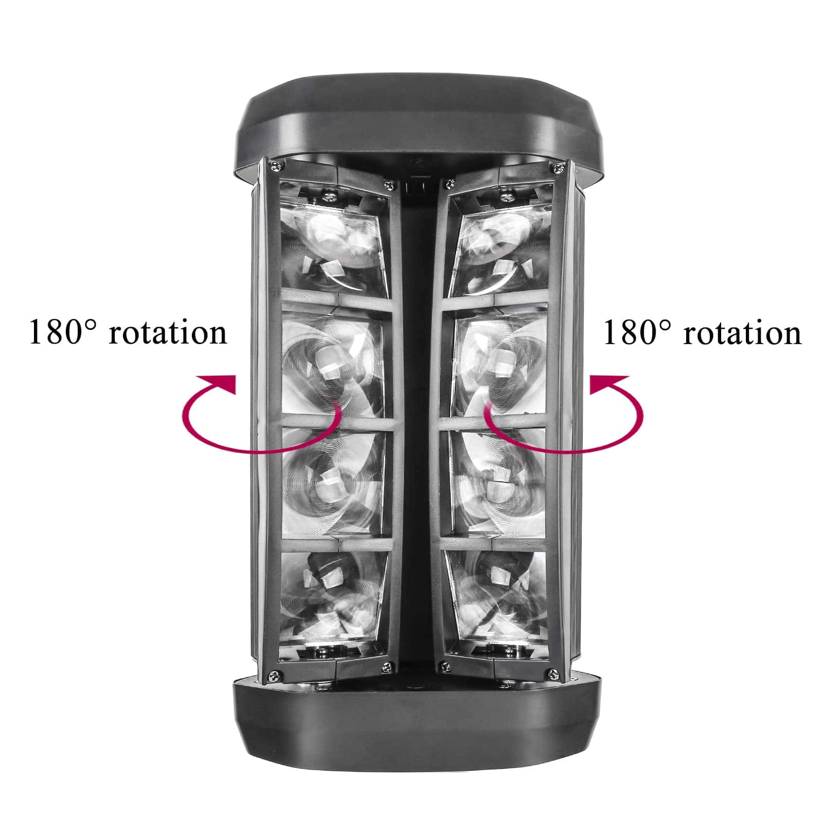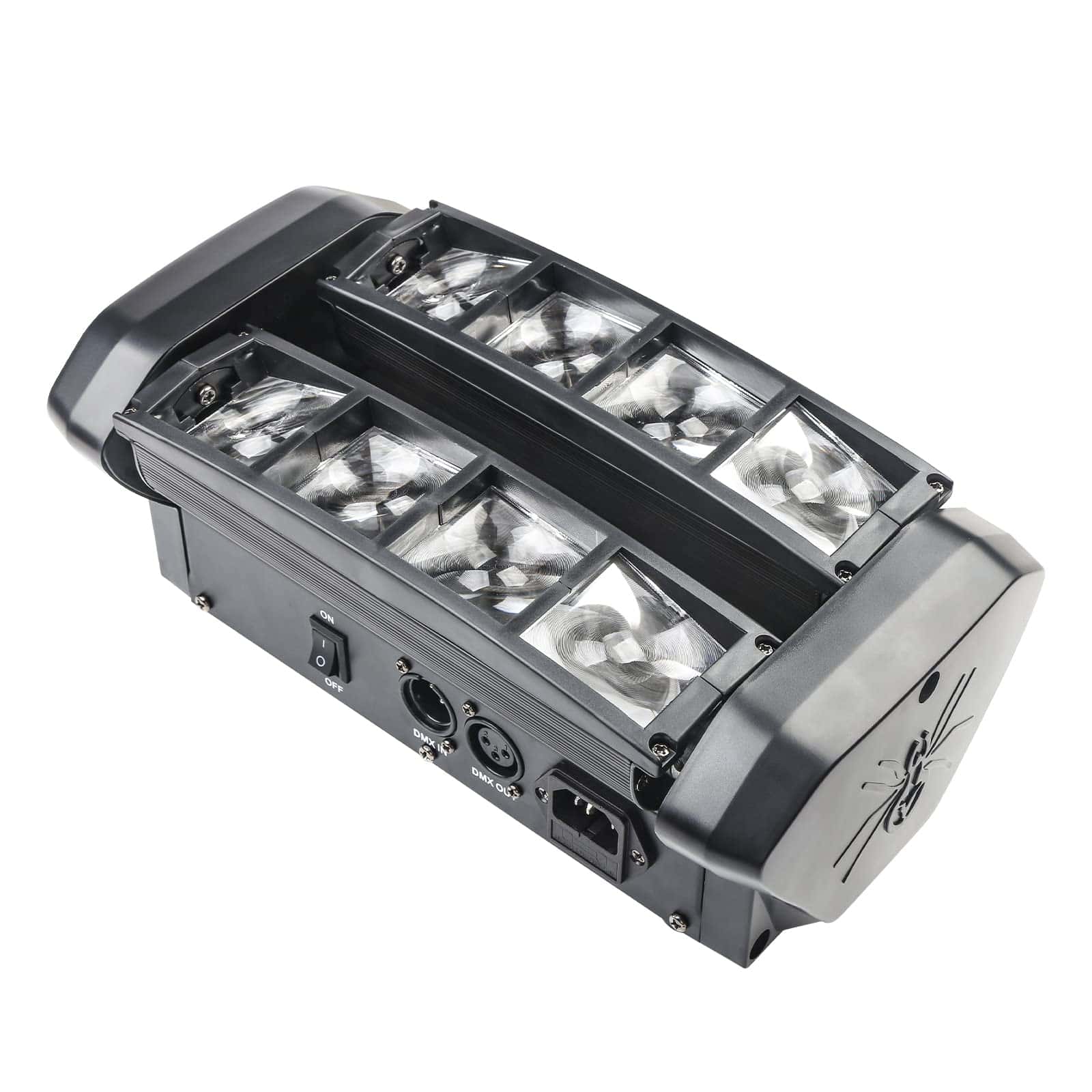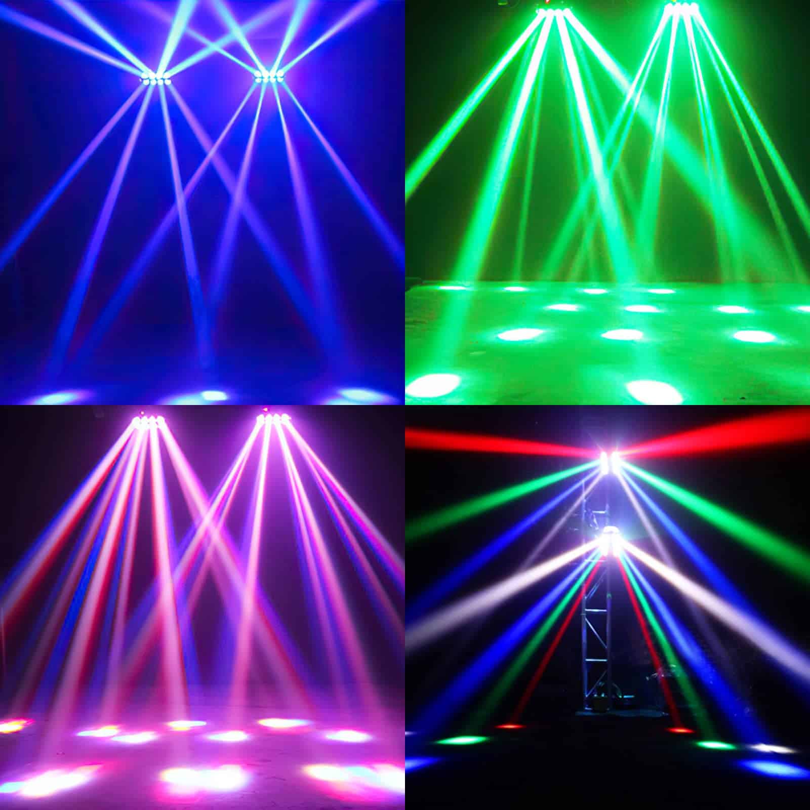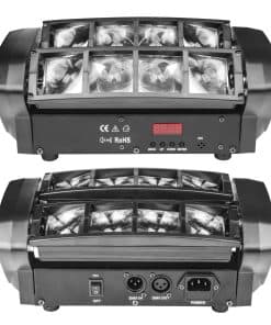 4. Es una lámpara de haz de escaneo de doble fila con cuatro haces correspondientes, que suman ocho haces en total. Pueden ser paralelos o cruzados, y se pueden controlar a través de la consola DMX o del sonido, aunque prefiero el control automático. Tiene programas integrados que no puedes imaginar. Si compras cuatro, puedes conectarlos en serie y usar el modo maestro-esclavo.