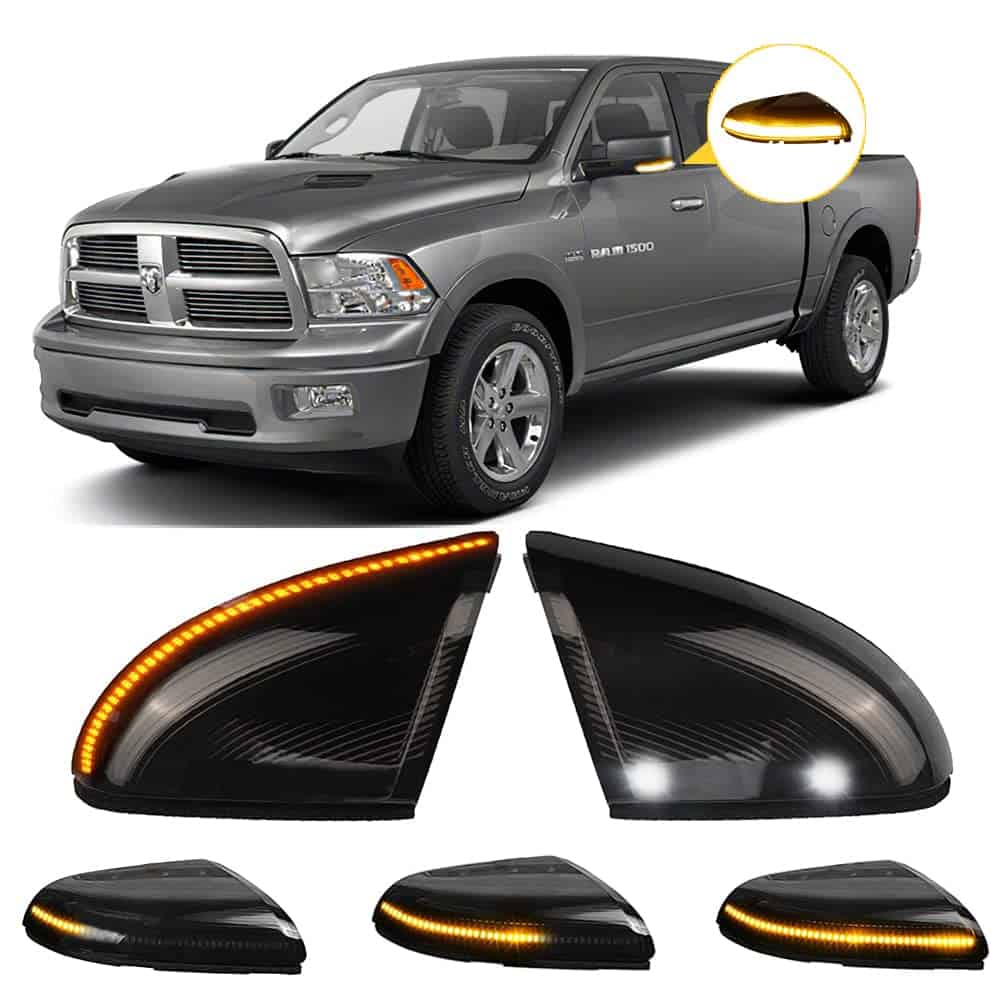 Jinfili Secuencia de luces de giro LED ámbar Lámpara de charco blanca compatible con Dodge Ram 1500 2500 3500. Característica: 100% nuevo lado izquierdo y derecho de las luces de señal de giro del espejo Color de la lente: Ahumado Color LED: Amarillo ámbar y blanco Material: Plástico ABS duro y duradero + chips LED de alta calidad Sin errores; CAN-bus; Sin mensaje de error Garantía del fabricante: 1 año Fácil instalación, simplemente retire el espejo de cristal y la cubierta del espejo y reemplace directamente la unidad de la lámpara de señal de giro del espejo OEM. Consejos de instalación: Retire cuidadosamente el cristal del espejo para acceder a los tornillos/ clips en el interior; Libérelos para quitar la tapa/cubierta, y luego reemplace directamente la tira de marcador lateral LED intermitente dinámico debajo de la tapa. Después de la instalación, bloquee el vehículo, espere unos 5 segundos y luego encienda el motor para permitir que la computadora de a bordo se reinicie antes de probar la función. Compatibilidad: Sustitución para Dodge Ram 1500 2009-2018 Sustitución para Dodge Ram 1500 Classic 2019-2021 Sustitución para Dodge Ram 2500/3500 2010-2018 Reemplazo de la parte de fábrica 68064949AA 68064948AA, 68232478AA, 68232479AA. Paquete que incluye: Un par de luces de señal de giro del espejo con lente ahumada (lado del pasajero y conductor)