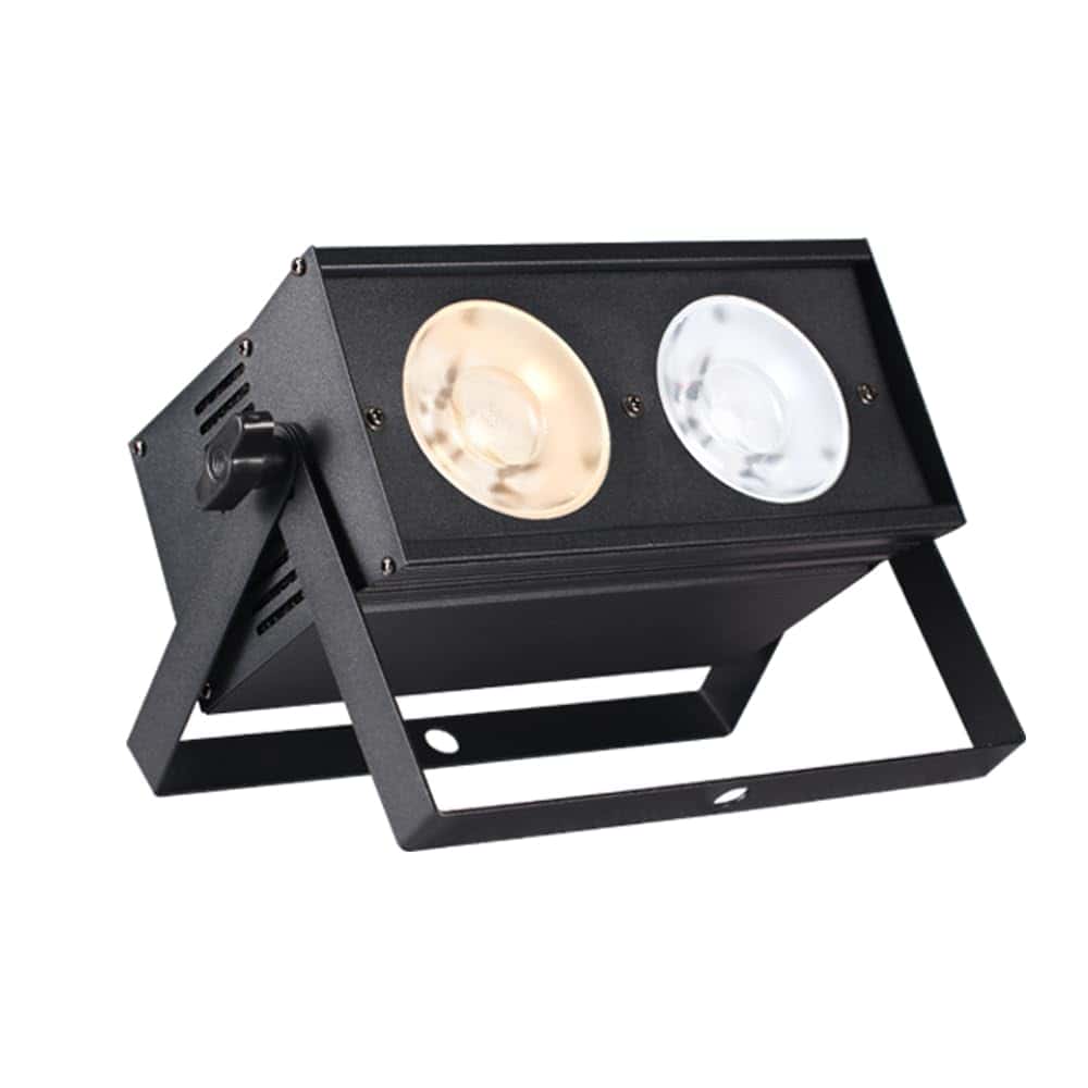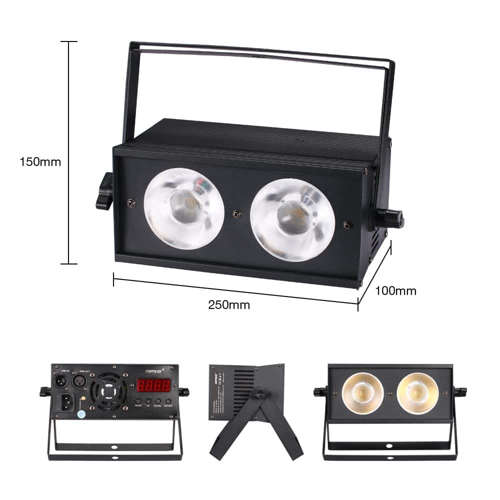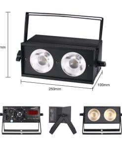 Esta es una luz de lavado de escenario, Mini Luz Blinder Led para Audiencia 2x50w Cob Blanco Frío Cálido Blanco 2en1 Control Dmx512 sin Parpadeo para Estudio Teatro DJ Fiestas de Conciertos.
