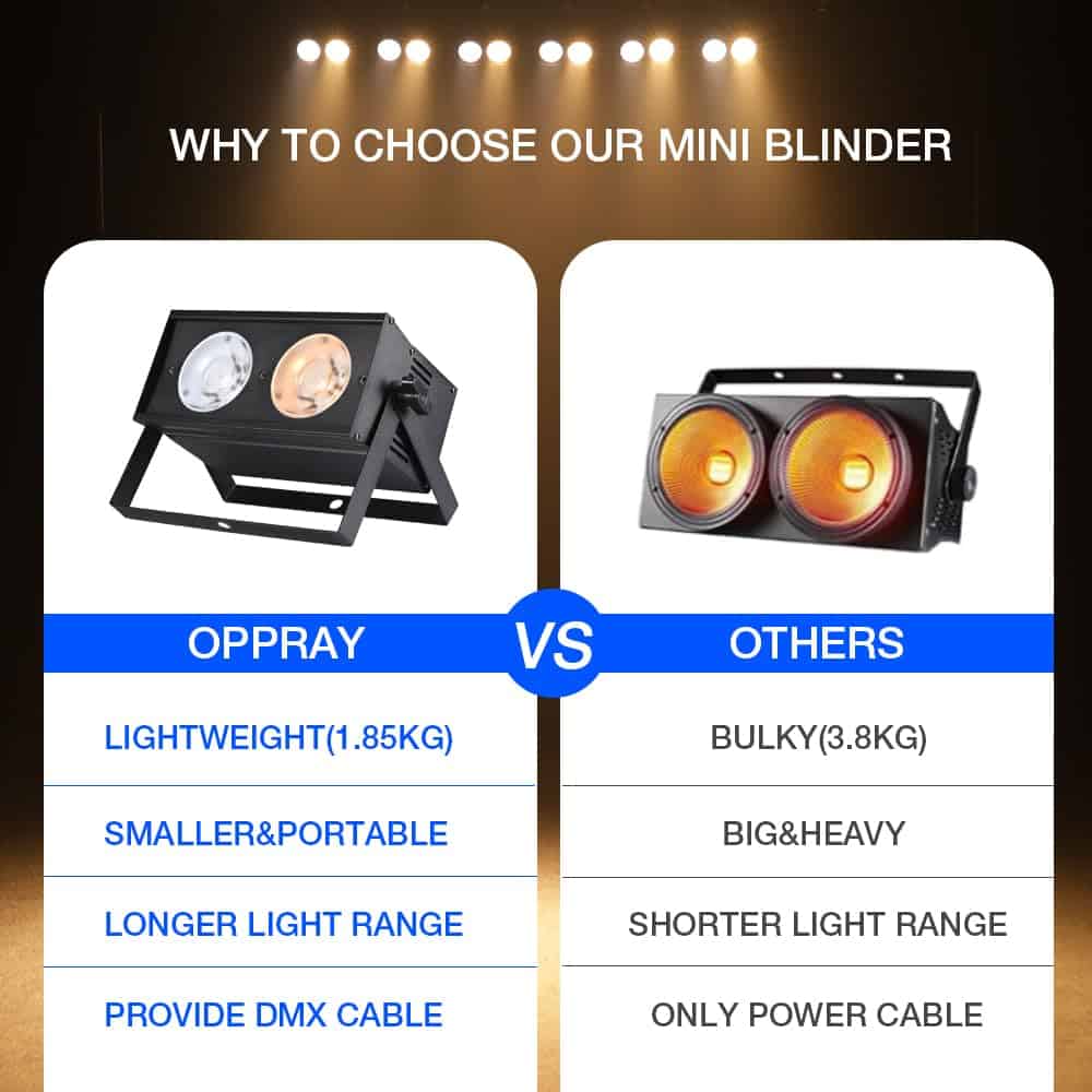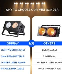2. Portátil y Ligero: En lugar de una luz pesada y grande, este aparato tiene un estuche más pequeño y menos peso que otras luces blinder para audiencia. Como luz blinder mini, es más portátil y flexible para cualquier tipo de lugar.