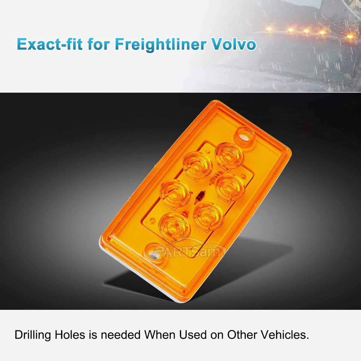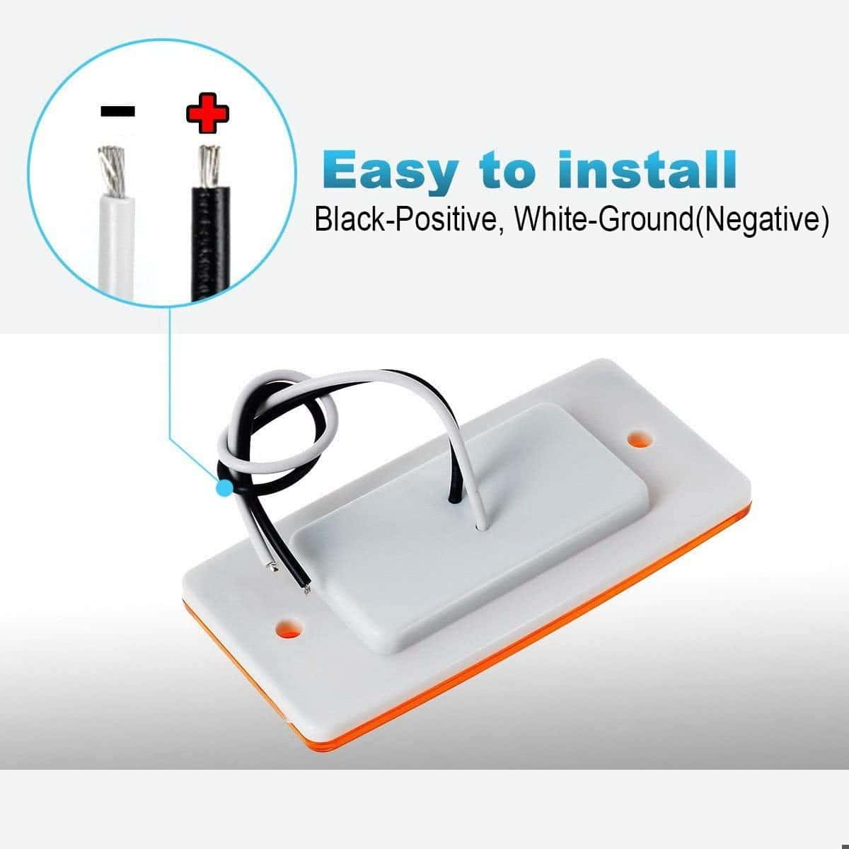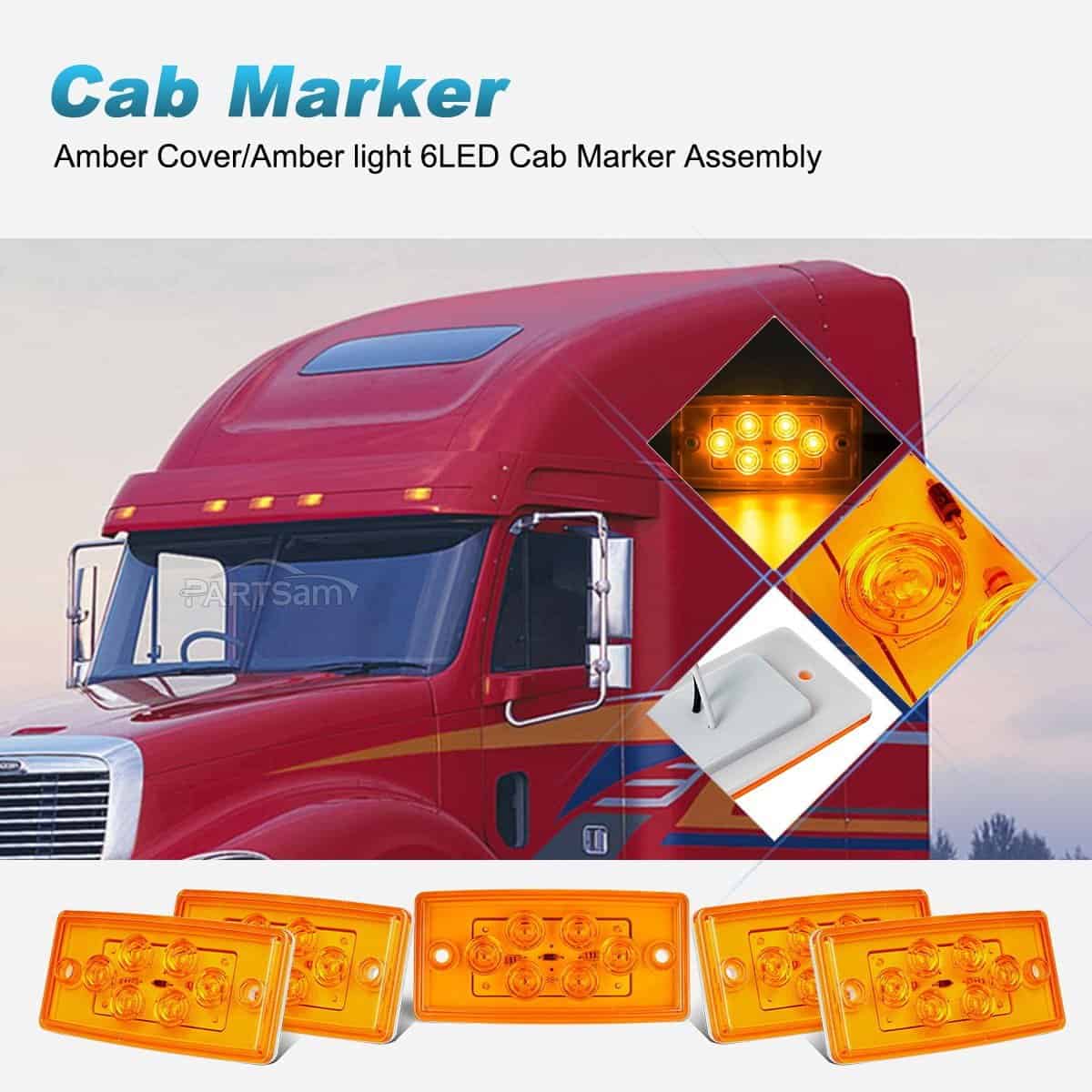 Luces de marcador de cabina Partsam 6LED Ámbar: Estas luces de marcador de techo son ideales para camiones pesados y remolques. Cada luz viene con 6 LED súper brillantes que proporcionan una mejor visibilidad de su vehículo en la carretera durante la noche. La lente y la carcasa de policarbonato son impermeables con clasificación IP65, lo que las hace aptas para su uso en condiciones de lluvia intensa o nieve. Son un reemplazo exacto para camiones Freightliner o Volvo, pero también son compatibles con otros camiones, remolques, tractores, semirremolques, camiones volquete y vehículos especiales de 12V. Los LED son más brillantes, consumen menos corriente y generan menos calor que las luces incandescentes convencionales, lo que le permite actualizar su sistema de iluminación de manera eficiente. Tenga en cuenta que estas luces no son Plug N Play y requieren cortar el enchufe para cablear. El cable negro es el extremo positivo y el cable blanco es el extremo negativo (cable de tierra).