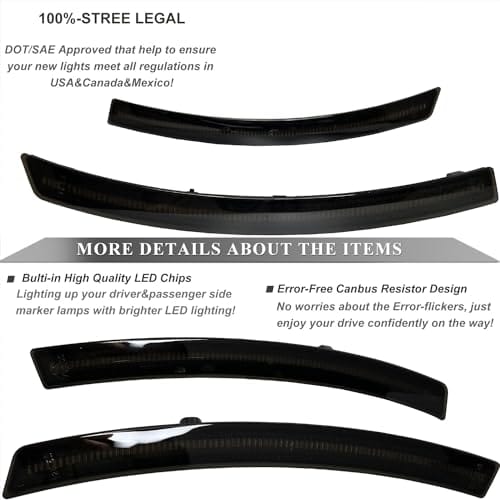 4. Presenta luces LED ámbar de marcador lateral, con carcasas de lámparas de lente ahumado, ¡una elección fantástica para actualizar / cambiar el aspecto del coche!