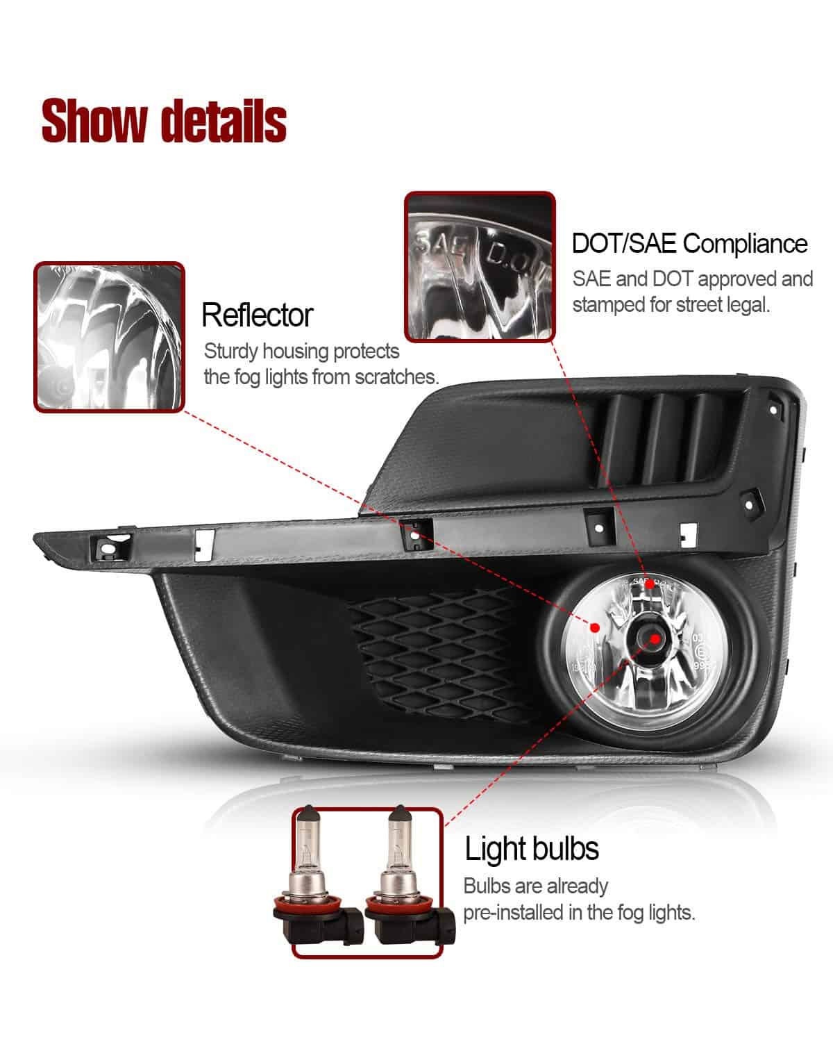 – Tipo de bombilla: H11 12V 55W