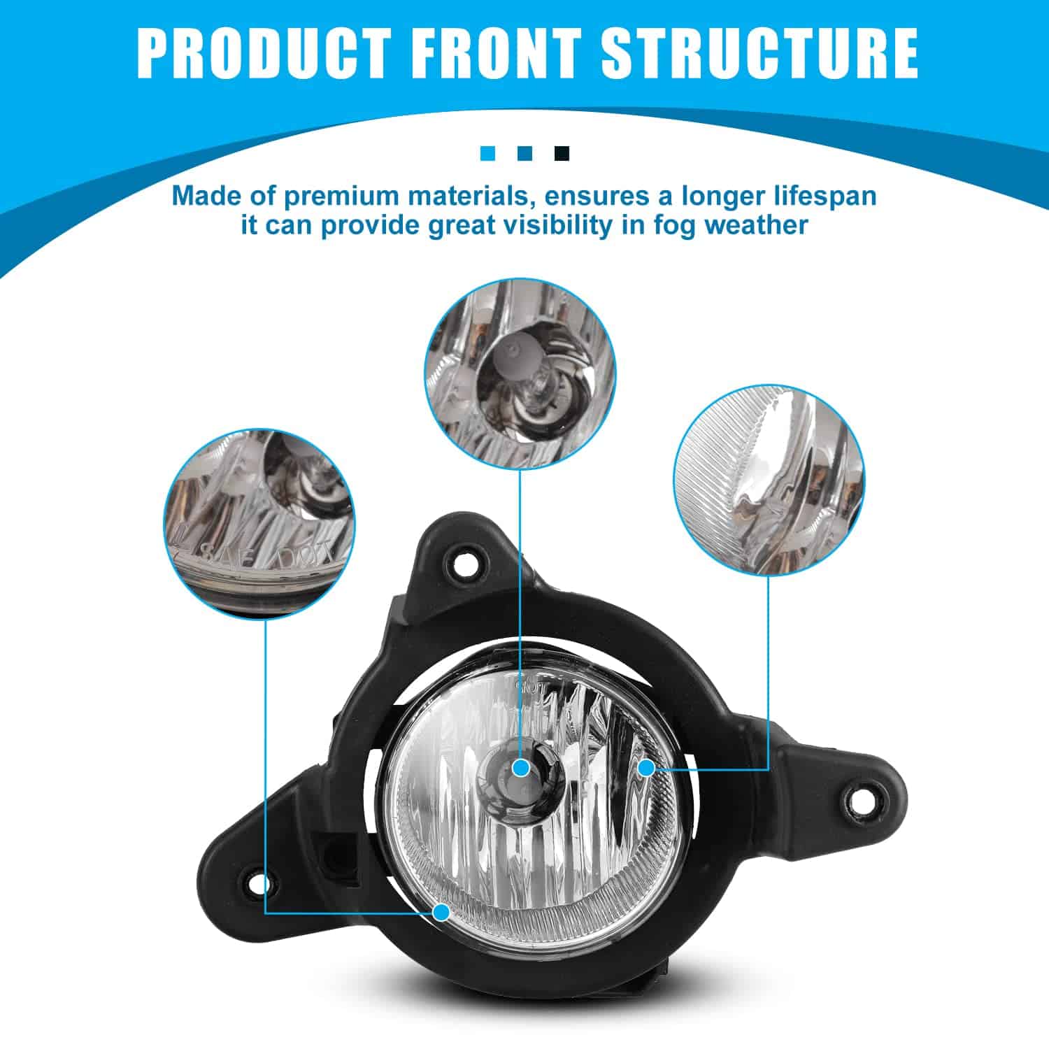 Súper impermeable: La carcasa duradera diseñada con diseño de sellador evita que la humedad, el polvo y la arena caigan dentro de la luz de niebla.