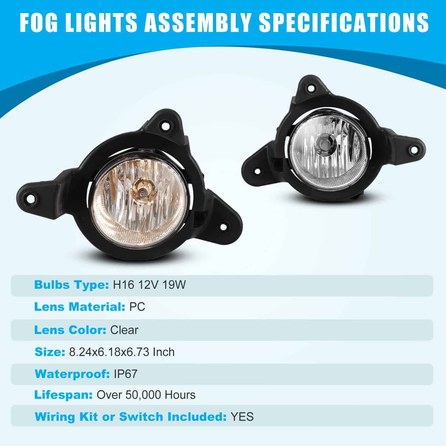 Paquete: Incluye 1 par de luces de niebla (lado del conductor izquierdo y lado del pasajero derecho)